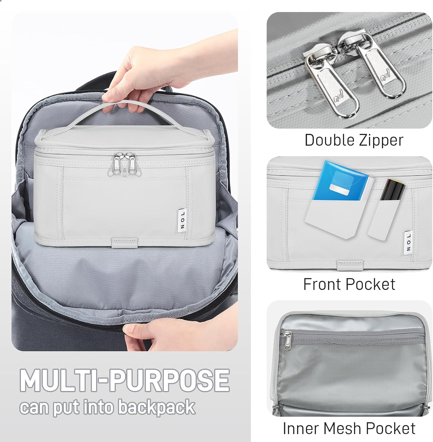 NOL Natural Organic Lifestyle Small Lunch Bag Mini Lunch Box Insulated Lunch Bag for Men/Women Leakproof Cooler Tote Bag Lightweight Nylon Waterproof Lunch Box For Work, Gray white