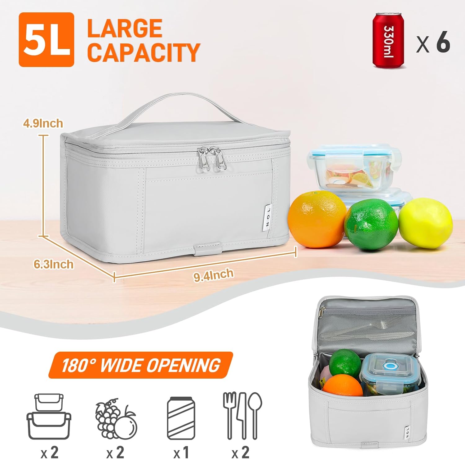 - Small Size: This SMALL lunch bag dimensions: 9.4IN x 6.3IN x 4.9IN, which can hold ONE PERSON'S meal. You can put a SMALL lunch box, some snacks, a flatware set and an ice pack or fit 6 cans of 330ml drinks in this mini lunch bag. Mini lunch bag have a soft handle and could easy put into backpack or large handbag. Perfect for work office, travelers. Please don't put ice cubes in lunch bag.
