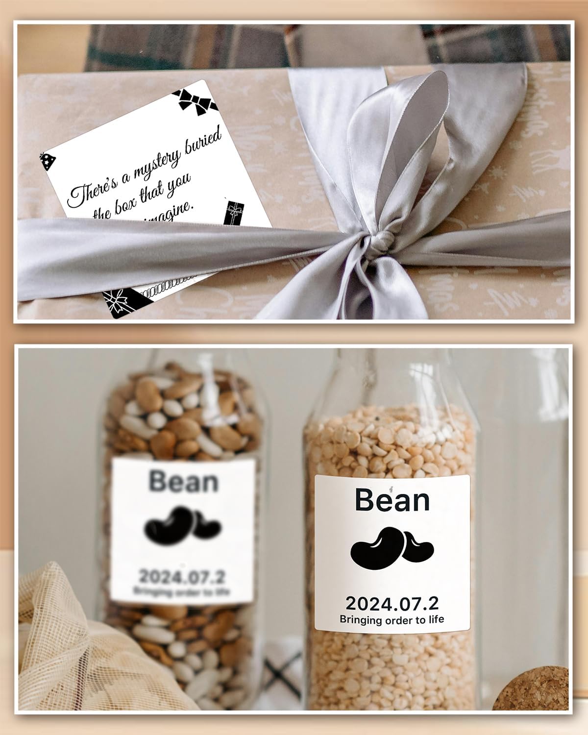 - Water & Oil Resistant: The thermal label sticker is made of high quality materials, make it has water and oil resistant surface. Perfect for office supplies, home decor, name tag, boxes, containers, gifts, price tag, daycare, etc