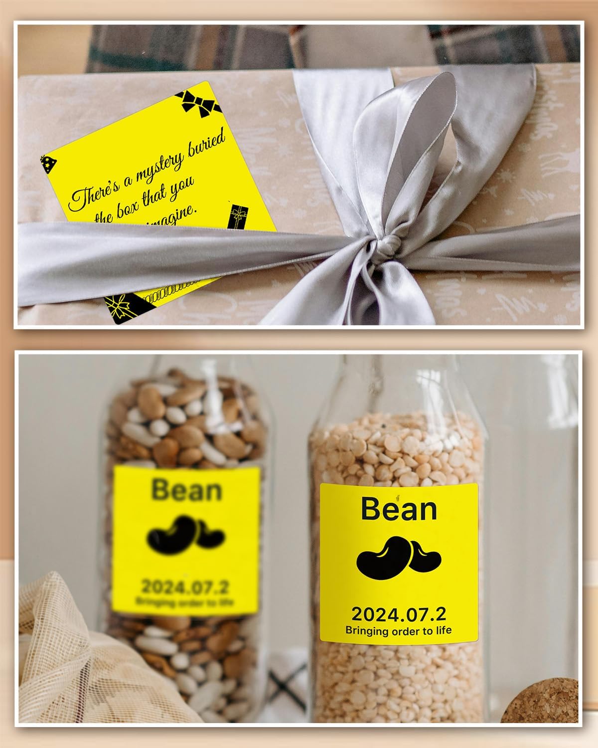 - Water & Oil Resistant: The thermal label sticker is made of high quality materials, make it has water and oil resistant surface. Perfect for office supplies, home decor, name tag, boxes, containers, gifts, price tag, daycare, etc
