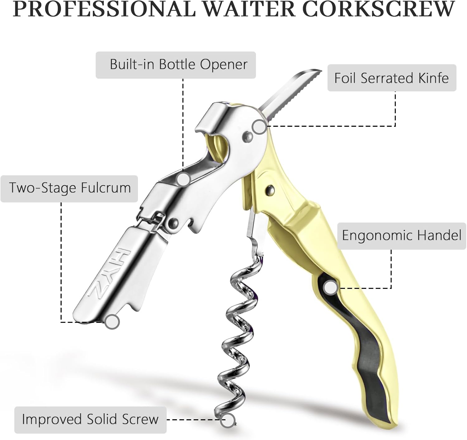 - MULTITOOL WINE OPENER: Made from 420 stainless steel and featuring a durable zinc alloy handle. It includes a classical double-hinged design that helps you pull the cork from the bottle with no effort. Featuring a built-in foil cutter and bottle cap opener, everything you need to open a bottle of wine or beer is conveniently and easily available to you in one tool