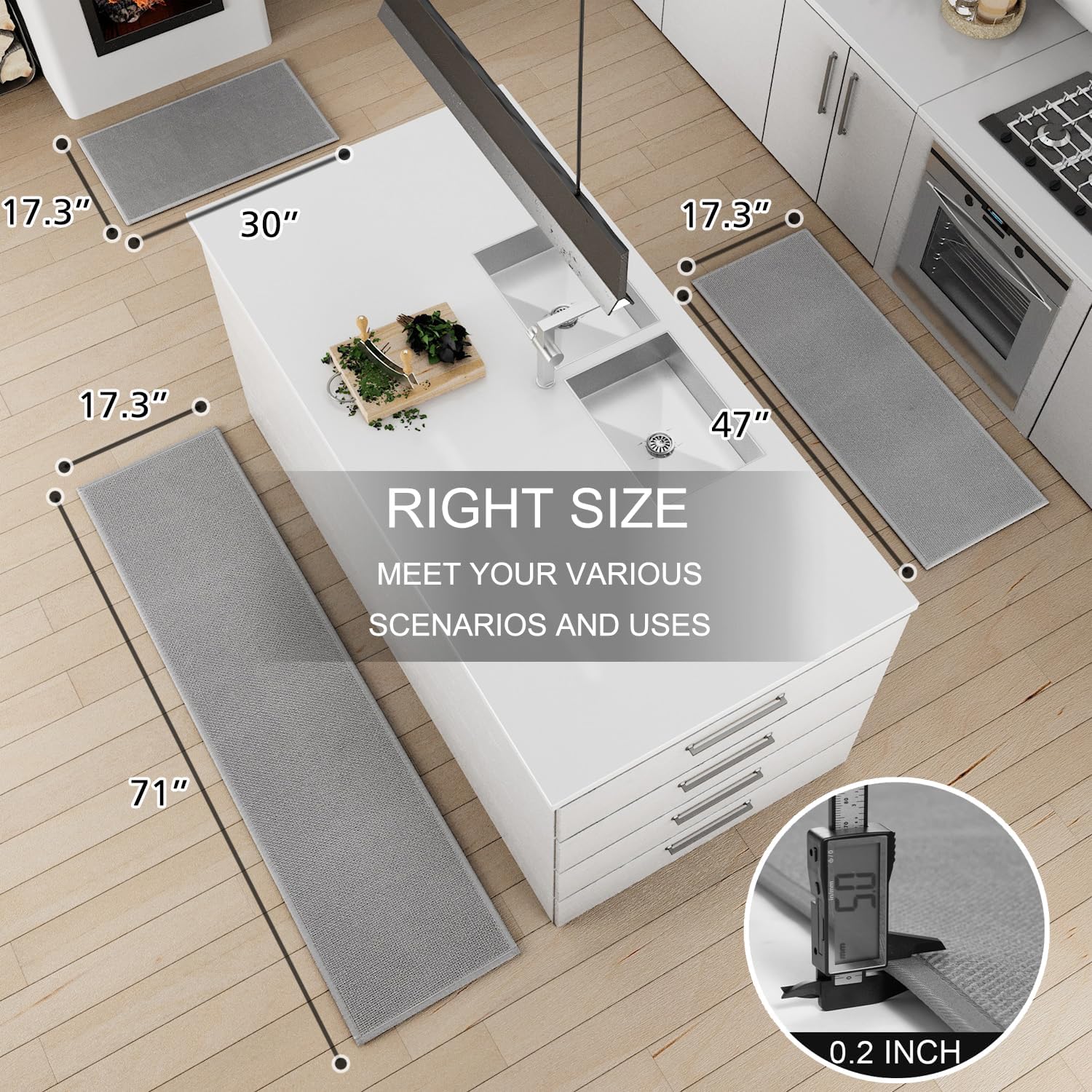 - MULTI-PURPOSE: The Kitchen Rug Measures 17.3 "X47"+17.3 "X71" 2-Piece Set And is Widely Used For Home Decor, Farmhouses, Interior Front Doors, Porches, Living Rooms, Hallways And Any Space With Heavy Traffic. The Surface Has a Sturdy Woven Structure So You Don'T Have To Worry About Your Pet Scratching It, And The Padded Back Relieves Foot Fatigue.