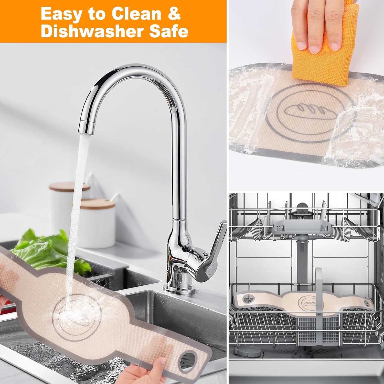 - 【Non-stick & Easy to Clean】The bread sling has a non-stick surface, suitable for baking all foods. Simply wipe with warm soapy water or rinse the bread mat with water. after use, or put it directly into the dishwasher to save time and effort.