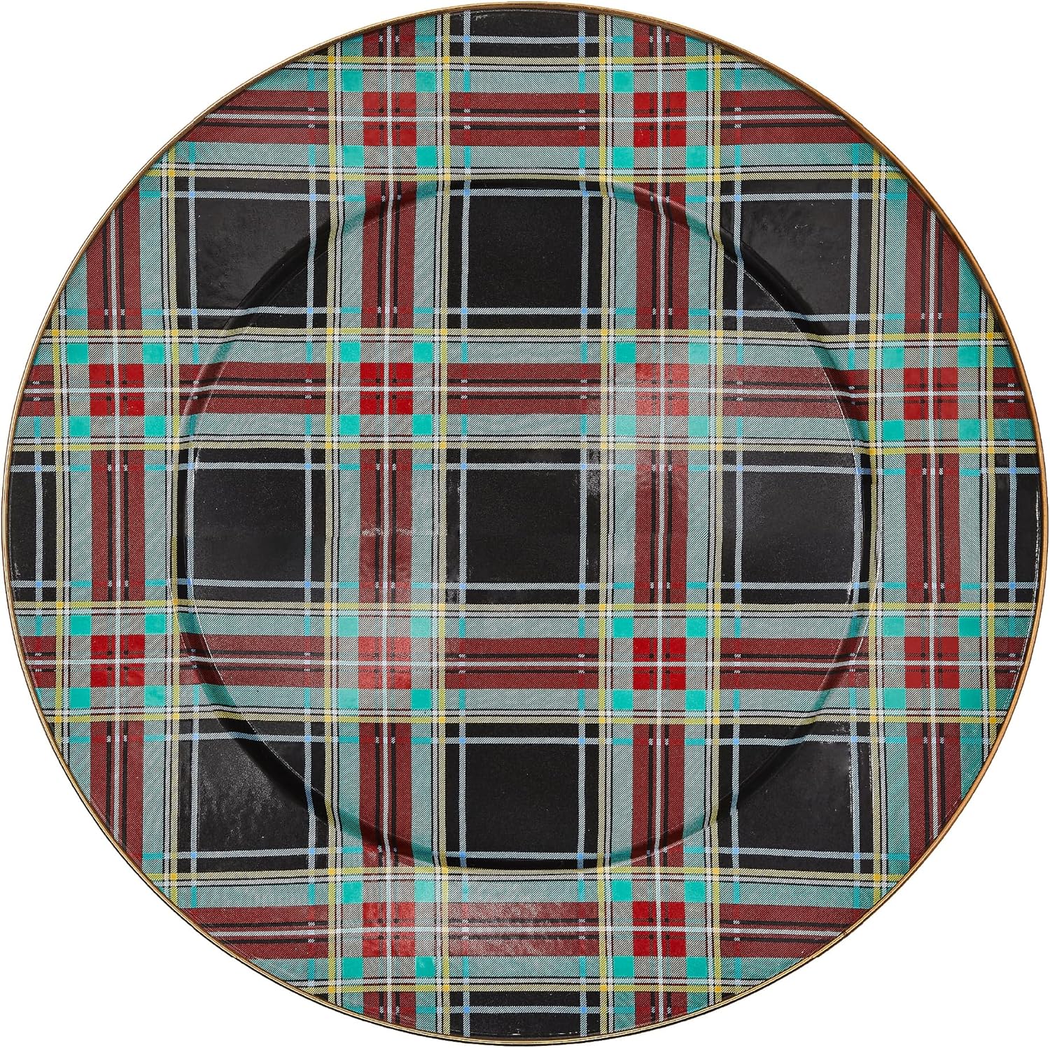 MACKENZIE-CHILDS Enamel Serving Platter, Decorative Serving Platter for Food, 16 Inches, Black Tartan