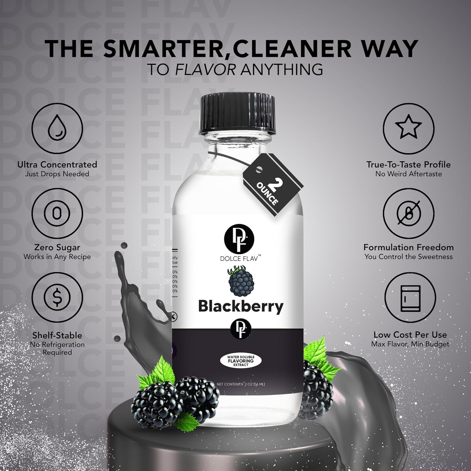 Dolce Flav Blackberry Extract - 2 Ounce Water-Soluble Multipurpose Flavoring Ideal for Baked Goods, Beverages, Coffee, Desserts & Ice Cream - Perfect Kitchen Gift for Holidays