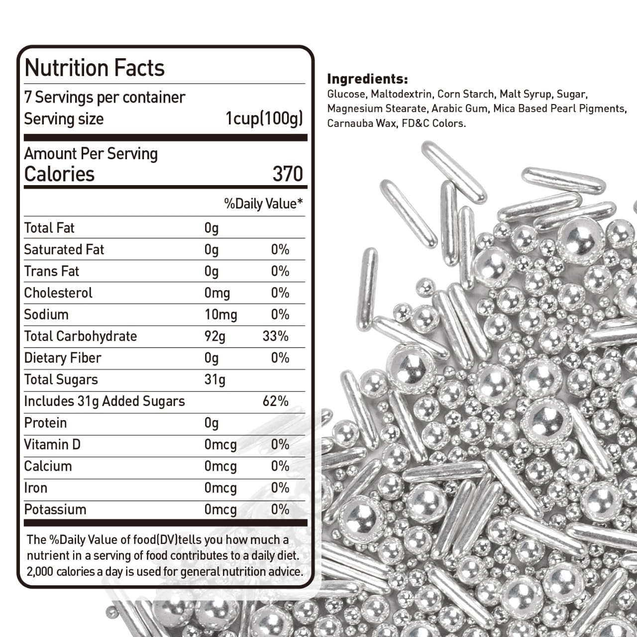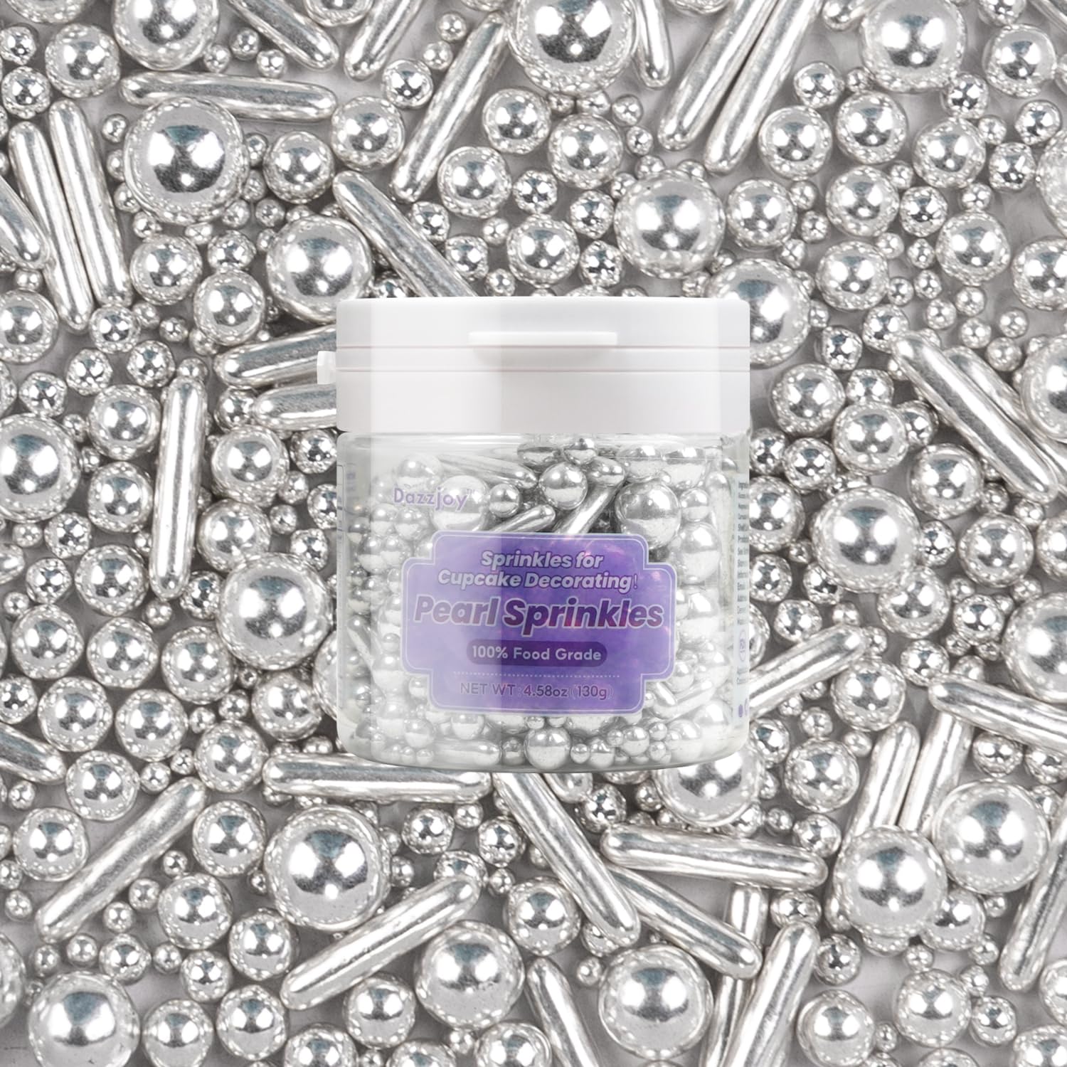 Dazzjoy Silver Pearl Rods Sprinkles, 130g/4.58oz, Mix Size, Pearl Sprinkles for Cupcake Decorating, Cupcake Toppers, Cake Decorations, Ice Cream, Wedding Party Valentines Easter Supplies