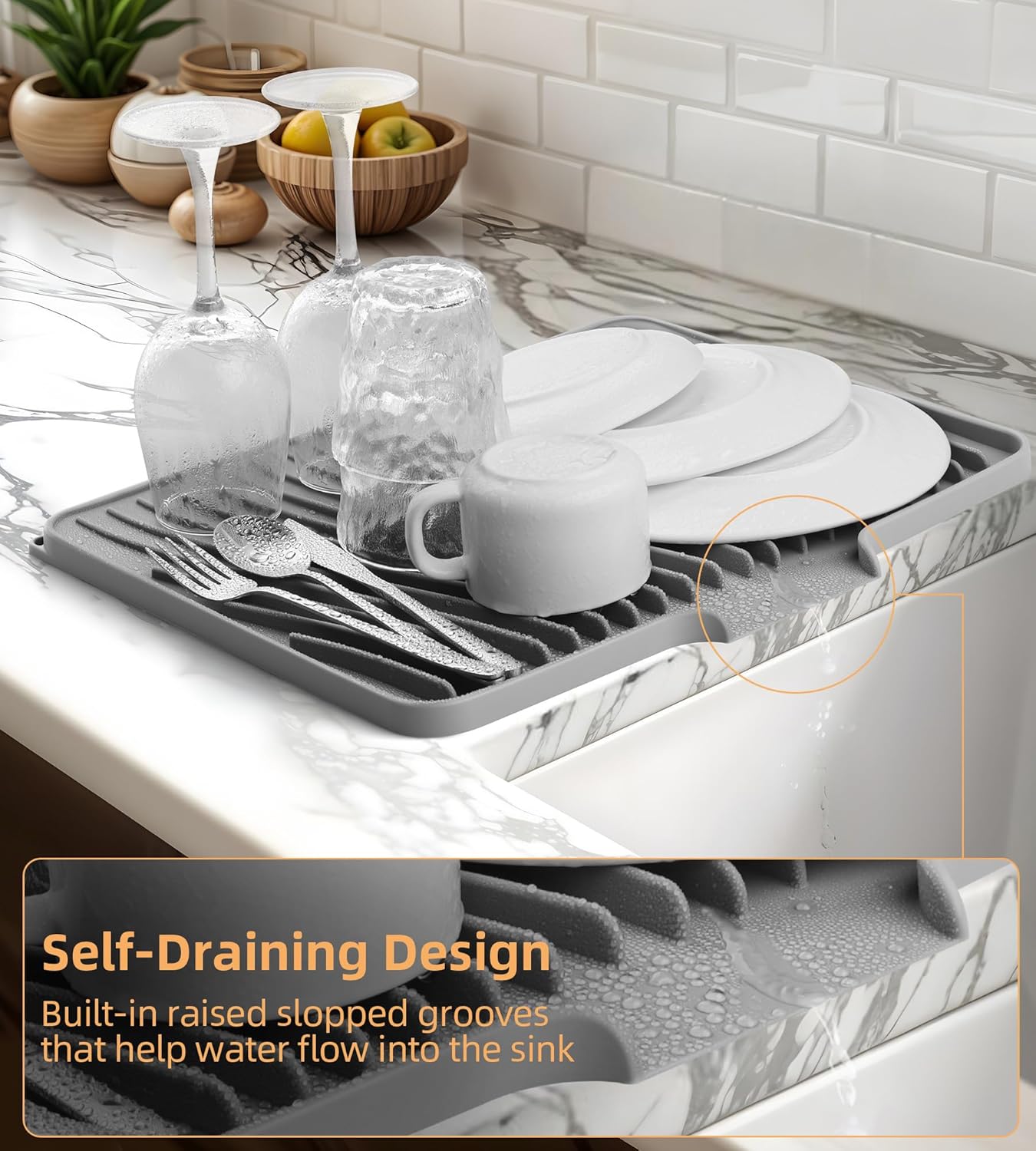 - Efficient Self-Draining Design: Slightly inclined ridges and a built-in drain lip facilitate water flow into the sink, accelerating drying. The raised edge prevents overflow