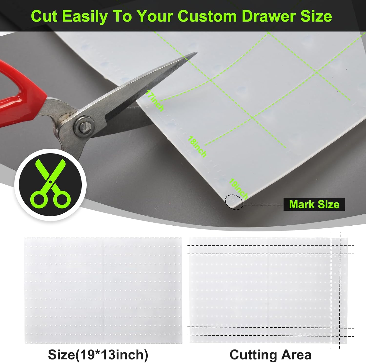 - 【Cut easily to your custom drawer size】Easy cutting along the groove pattern to custom spice drawer insert, can also customized to a unique size or shape to suit your spice drawer, just measure spices drawer and then use household scissors to trim the liner to the desired size.