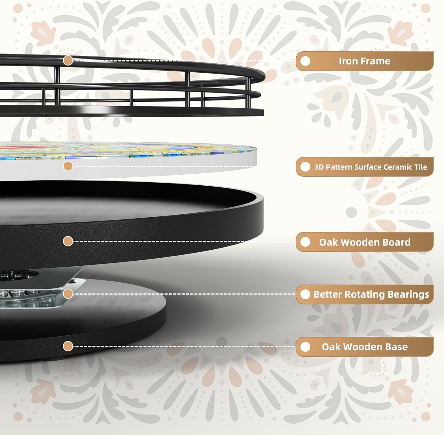 - ๐๐ง๐ข๐ช๐ฎ๐ ๐๐จ๐ก๐๐ฆ๐ข๐๐ง ๐๐ ๐๐๐ญ๐ญ๐๐ซ๐ง: This Lazy Susan for table top features a stunning Bohemian style with vibrant colors and intricate 3D printed tile patterns, making it a perfect accent piece for any table setting; Each piece is carefully crafted with colorful tiles to add a touch of artistry and elegance to your home decor
