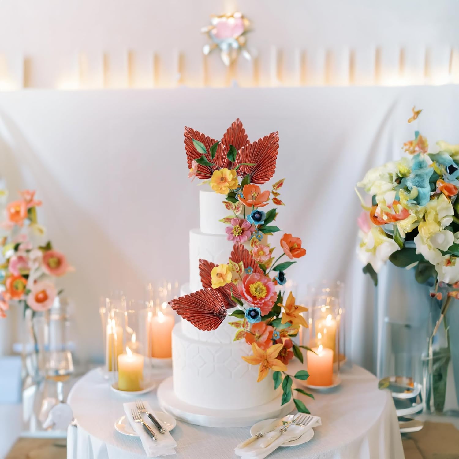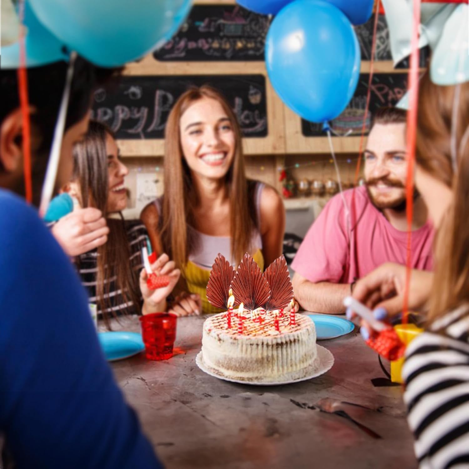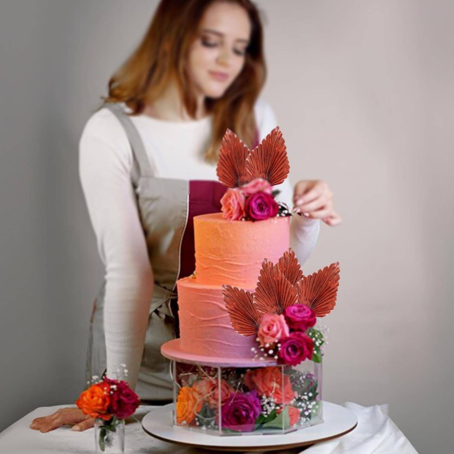 - -Package included: 6Pcs Paper Palm Fan Cake Toppers. Comes with unassembled, so you can insert into your cake with stick, which make your cake more interesting.