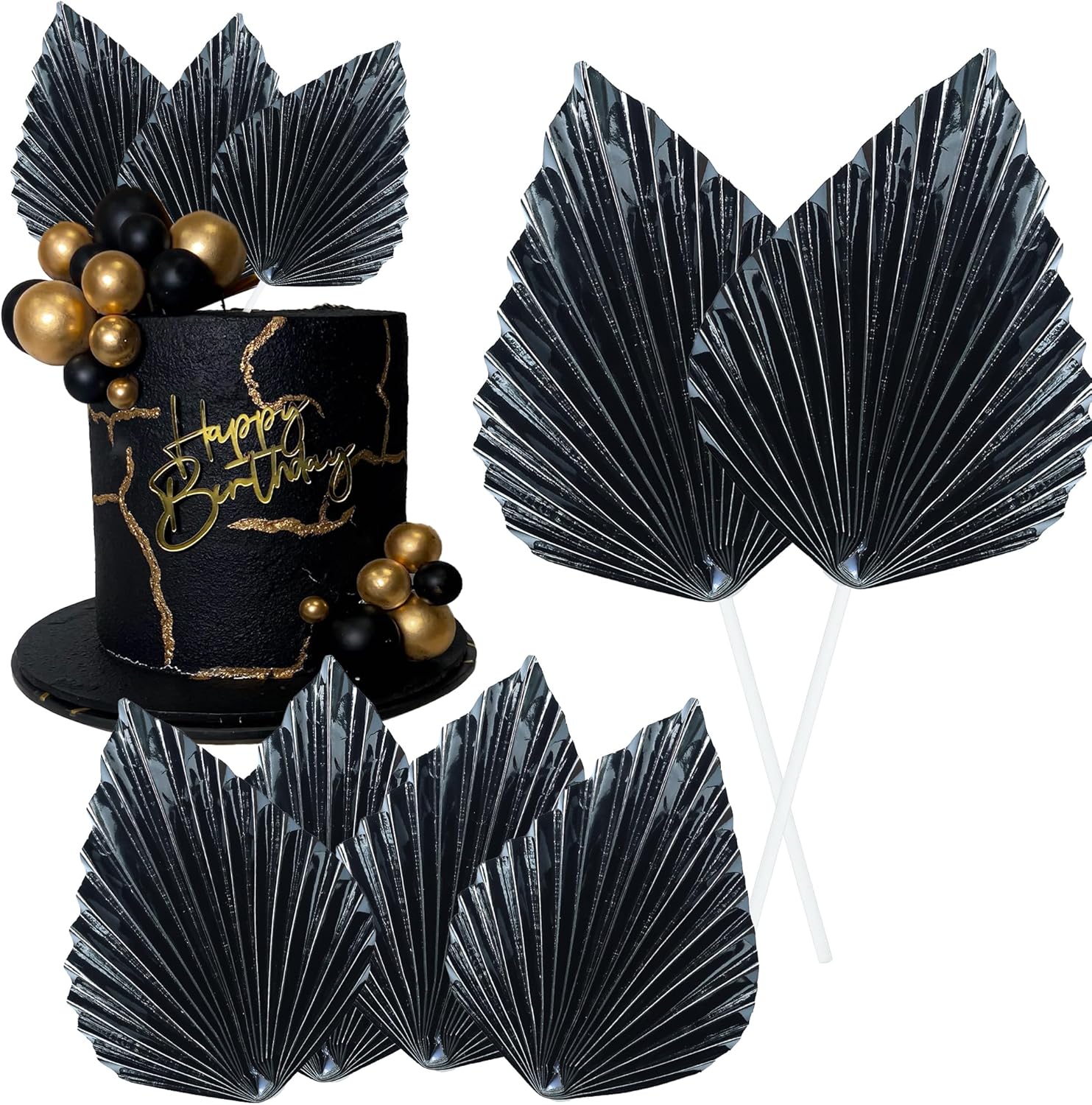 - -Package included: 6Pcs Paper Palm Fan Cake Toppers. Comes with unassembled, so you can insert into your cake with stick, which make your cake more interesting.