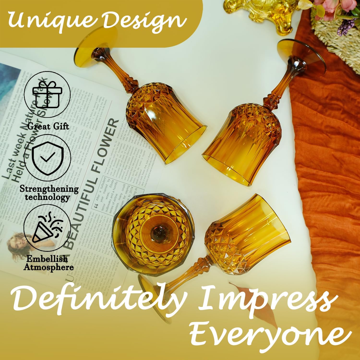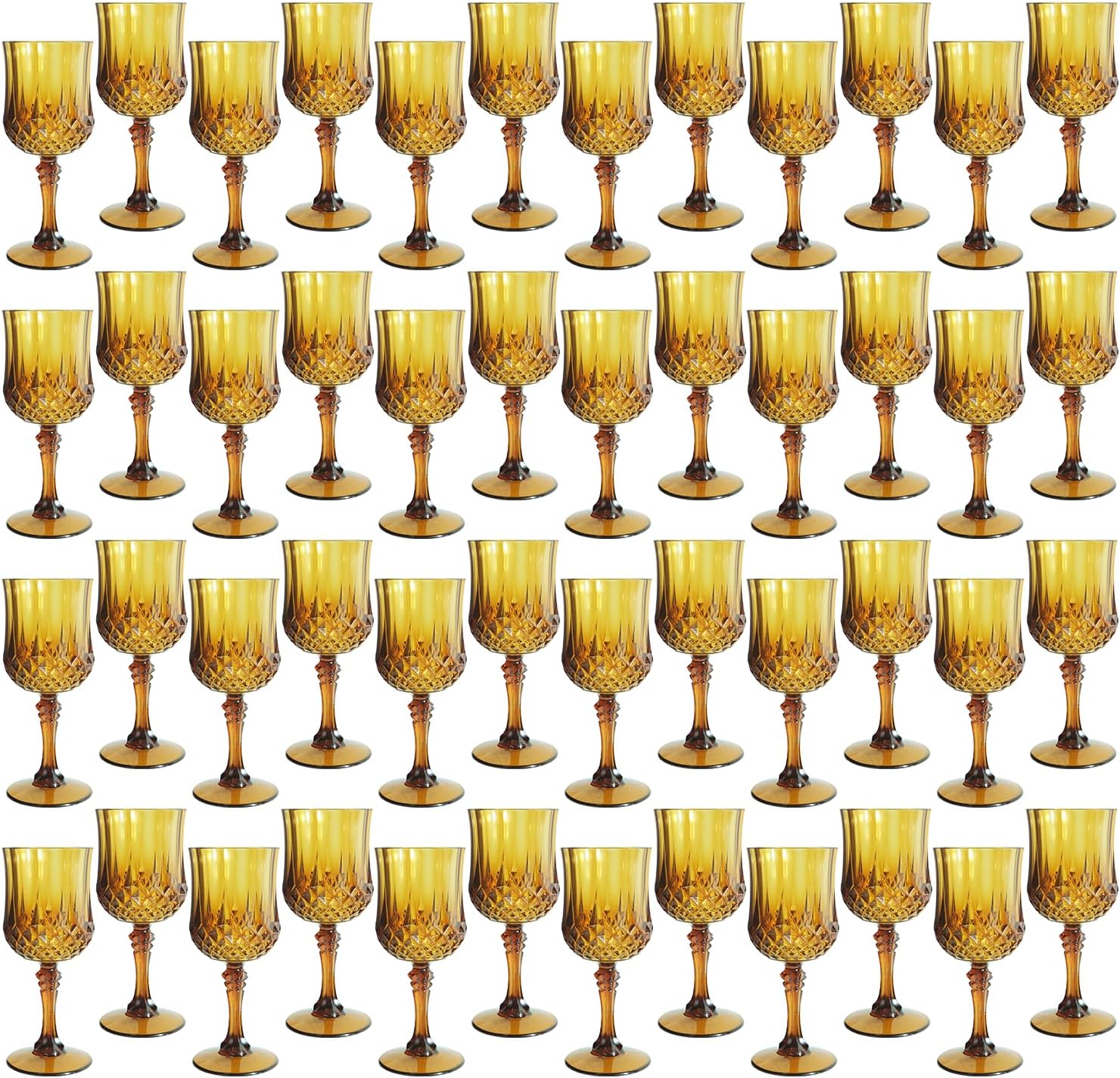 Plastic Wine Glasses,Plastic Goblets Vintage Style Cordial Drinking Glasses for Wedding Reception, Grand Event Party Supplies (48, Amber)