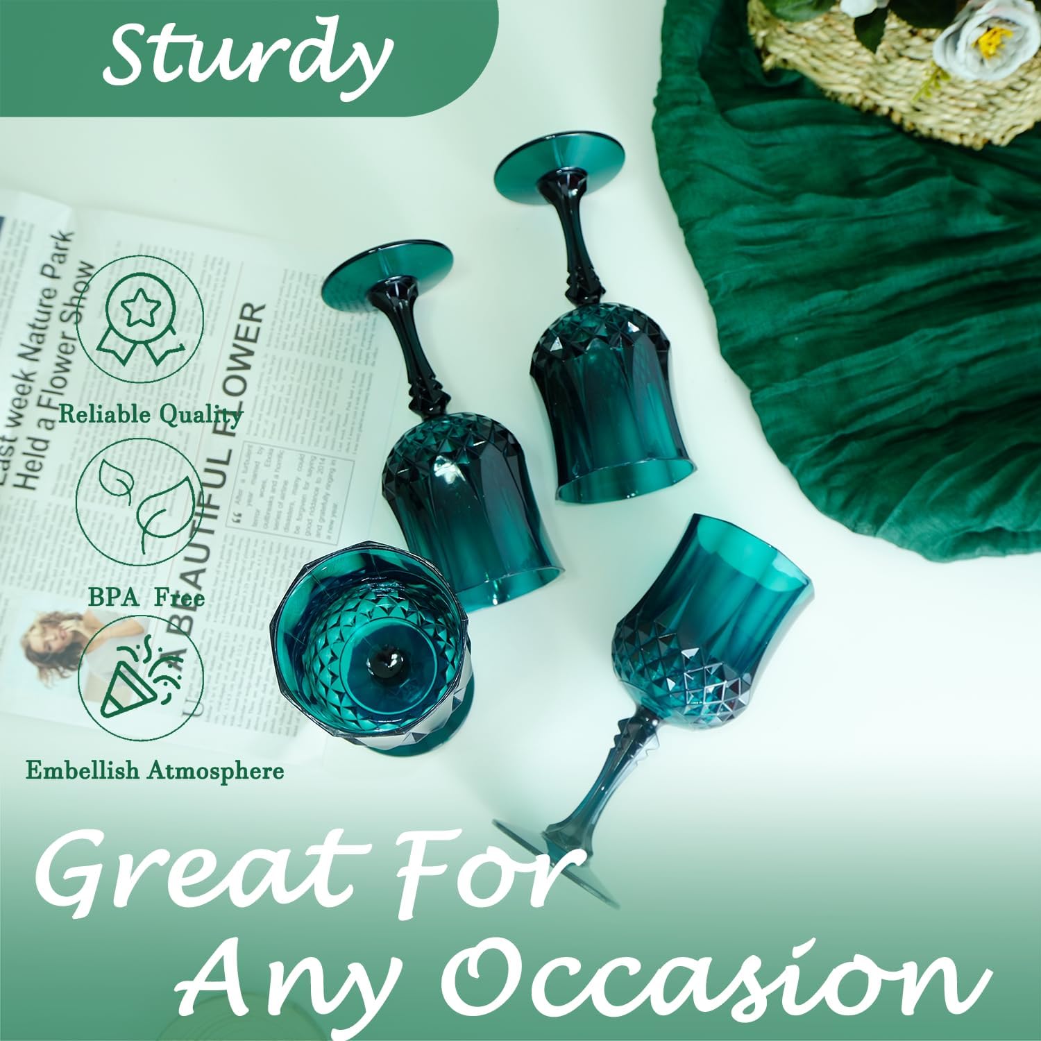 Plastic Wine Glasses,Plastic Goblets Vintage Style Cordial Drinking Glasses for Wedding Reception, Grand Event Party Supplies (48, Green)