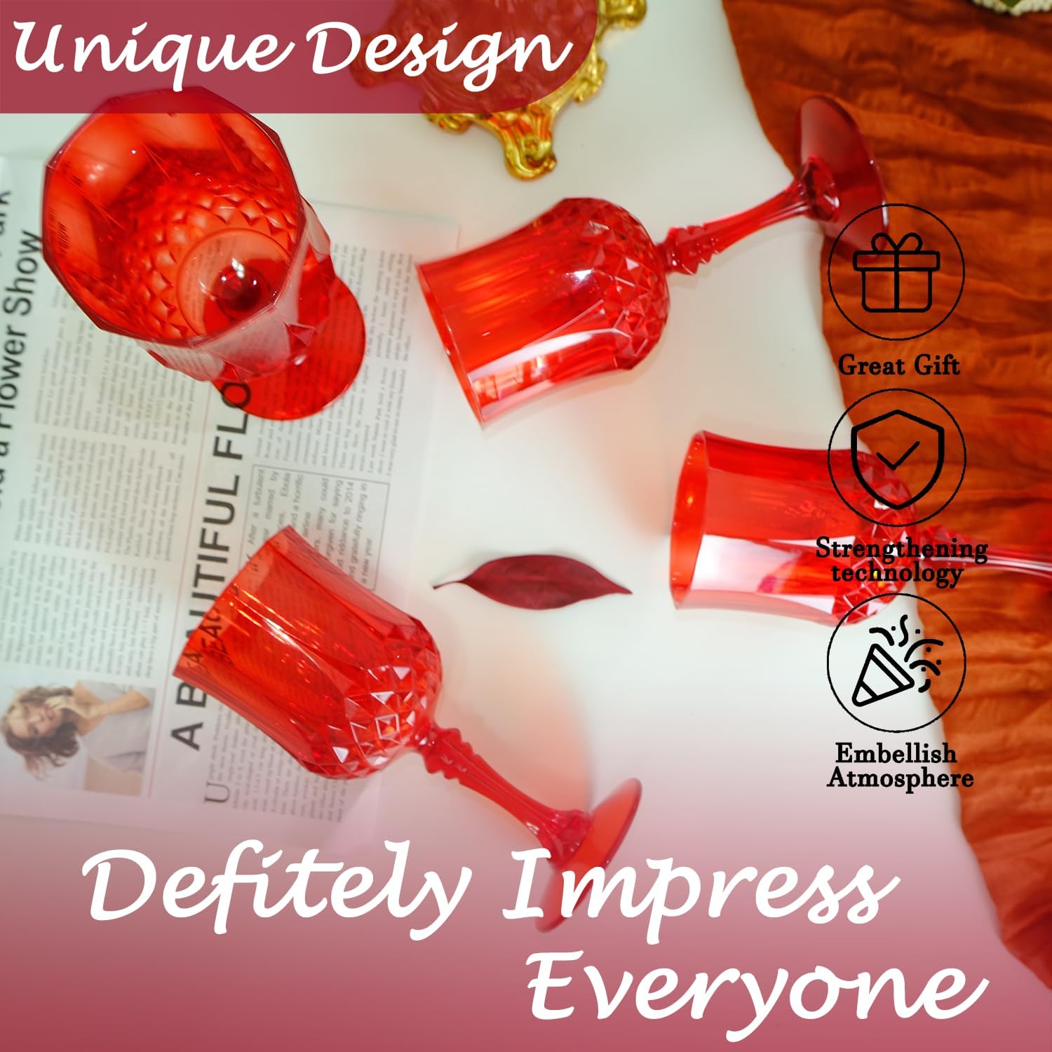 - 🍷🍷🍷【Product Description】 This set includes 24 retro-style red party plastic wine glasses, providing ample quantity to meet your daily use and replacement needs. The elegant and sophisticated design makes your wedding reception unique