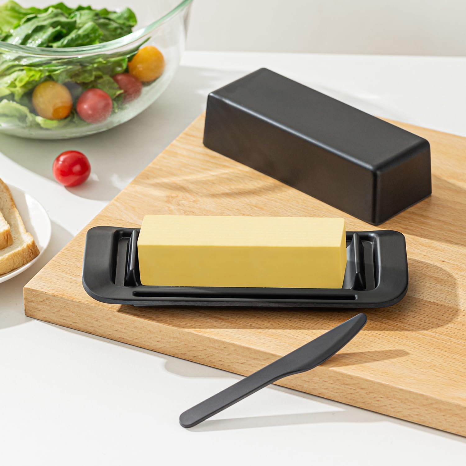- Built-in Knife Slot for Convenience: The butter tray features a dedicated slot to securely store your butter knife, keeping it tidy and always within reach. No more searching for misplaced knives!