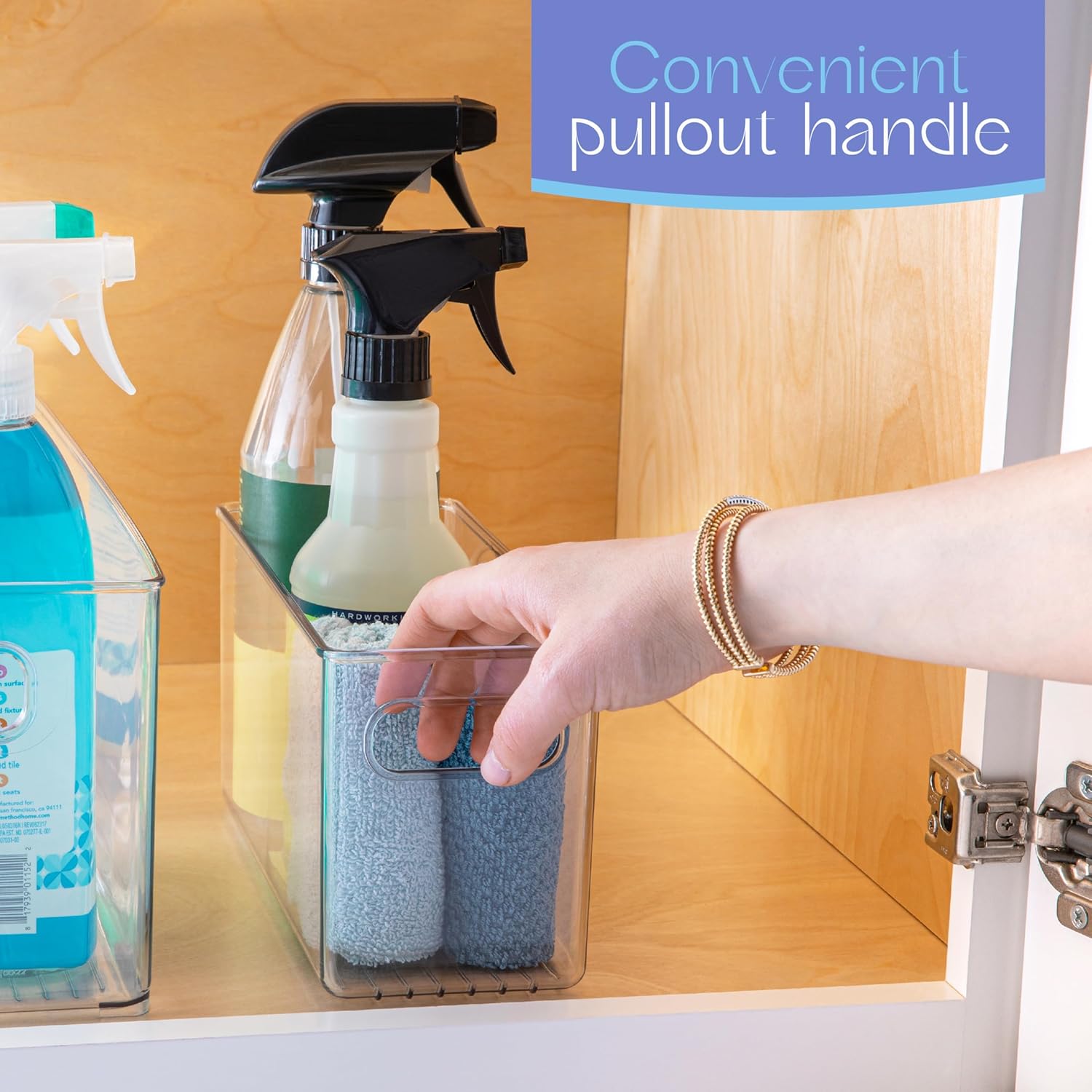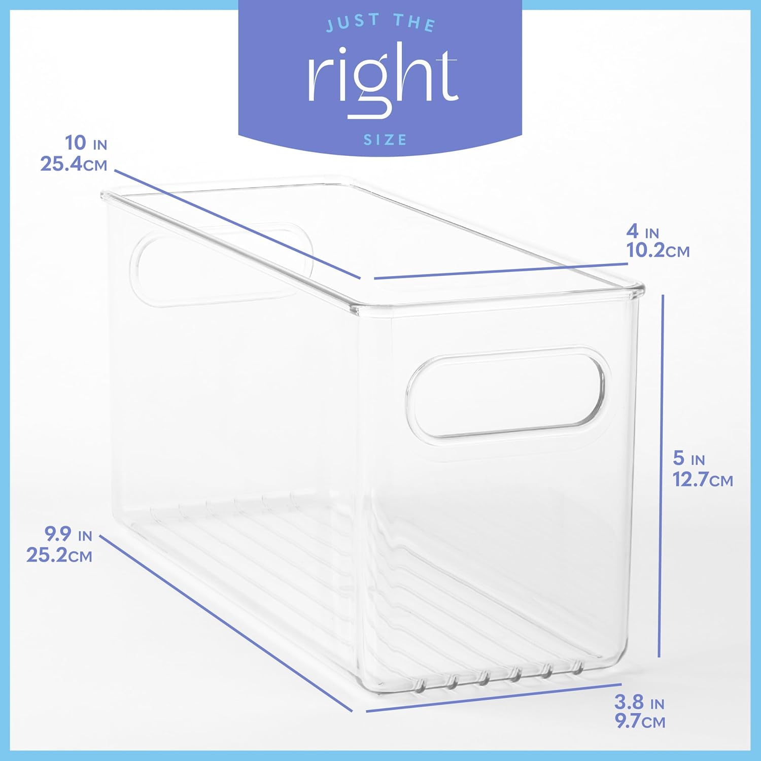 2 pack Clear Plastic Storage Container Bin with Integrated Easy Grip Handles. For Kitchen, Fridge, Freezer, Cabinet, Pantry, Bathroom Organization. 10"x4"x5"