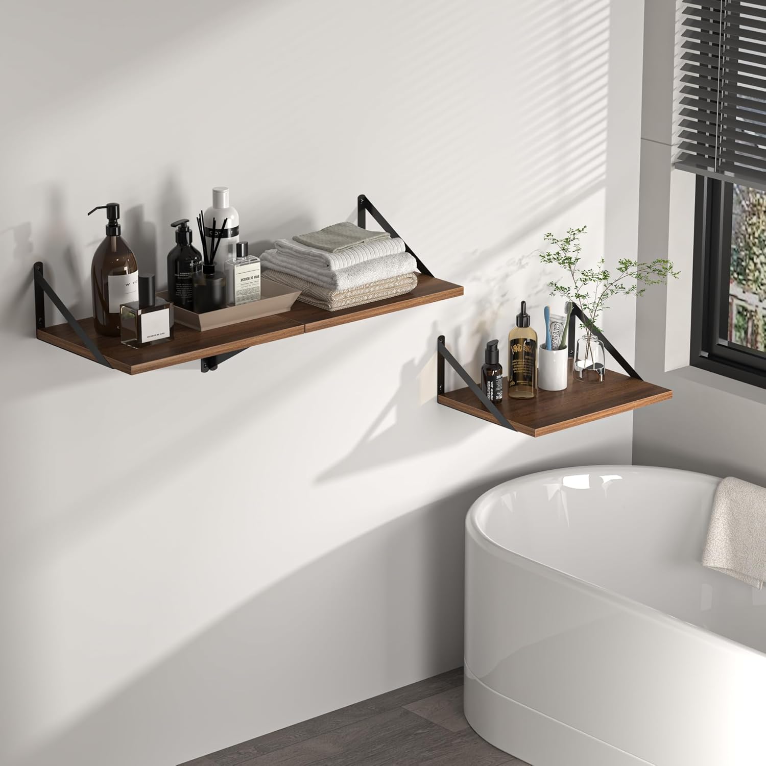 - [Discover More Organization Space] - Don't worry about cluttered desktops and floors! Why not try using the walls? The wonderful combination of smooth-surfaced metal brackets and engineered wood board texture decorates your home with a natural and rustic beauty! Great for organizing books, collectibles, plants, and trophies on the wall without occupying floor space.