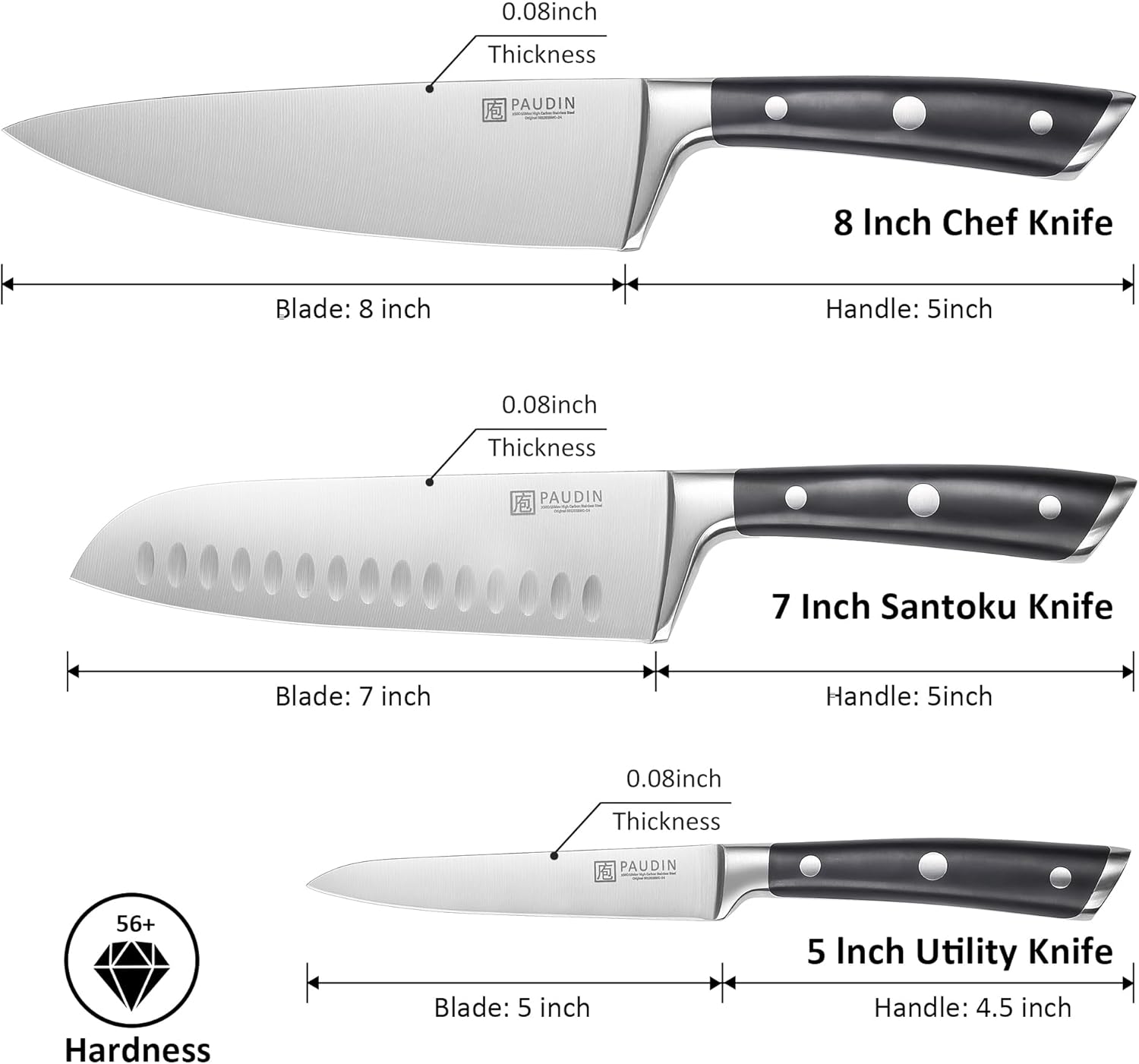 - Complete 3-Piece Kitchen Knife Set: Perfectly designed for the home cook or professional chef, this chef's knife, Santoku knife, and paring knife set gives you the tools you need for every culinary task. From chopping and mincing to slicing and dicing, enjoy precision and versatility with every cut. Elevate your kitchen experience today!
