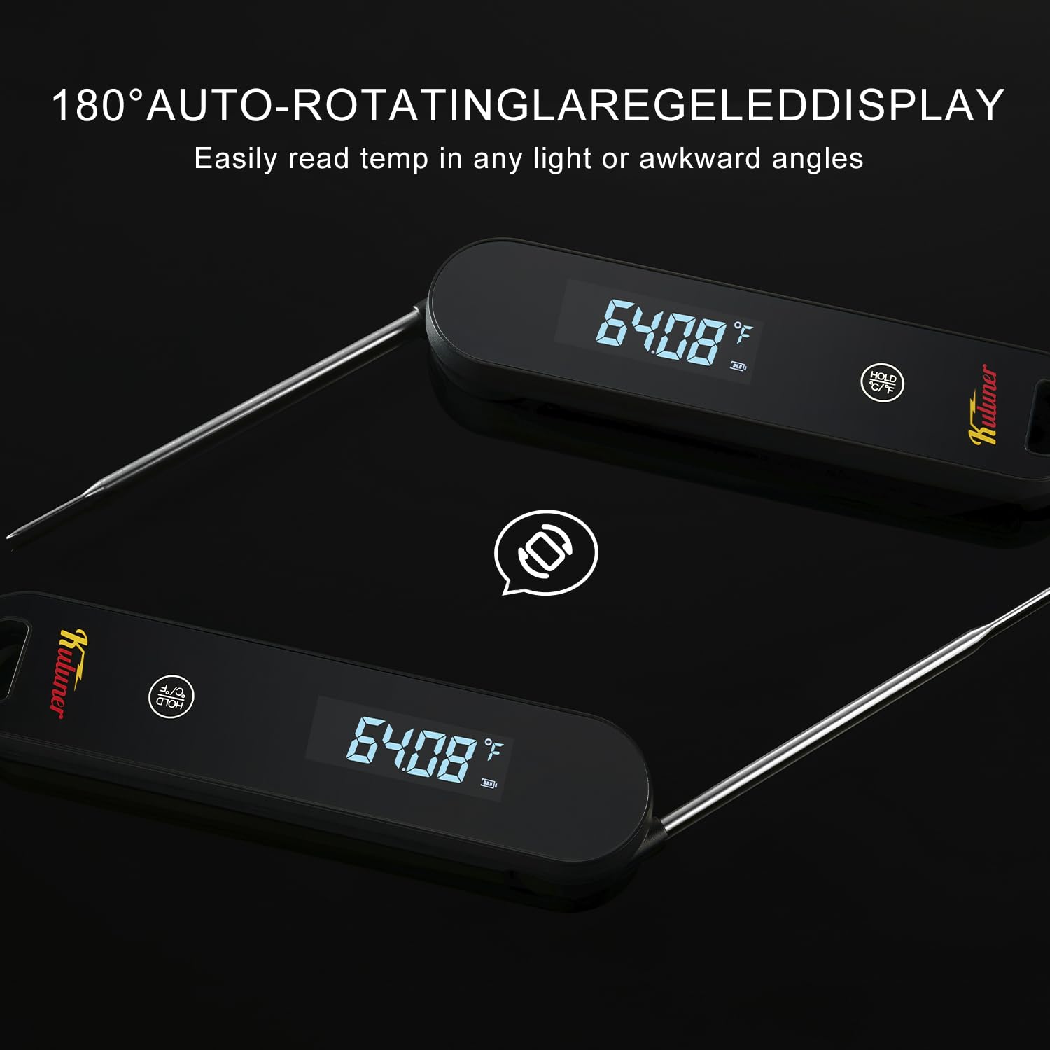- Super Easy to Read: Whether you're righty or lefty, hold it however you like, the bright screen flips 180° so you can always see the temp clearly. No squinting needed, even in bright sunlight or dim light!