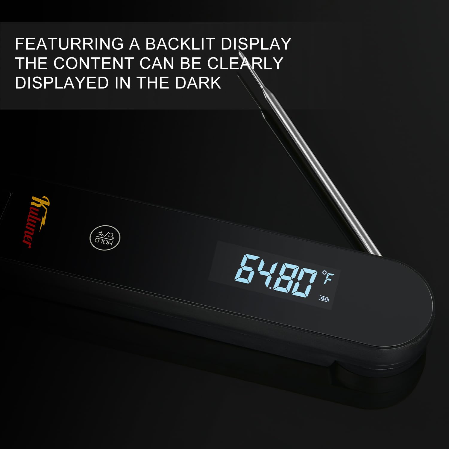 - Waterproof & Smart: KULUNER thermometer is IP67 waterproof, so you can easily rinse it off under the faucet after use (no dishwasher needed). It also lets you switch between °C and °F with a breeze and has a hold function to lock in readings.