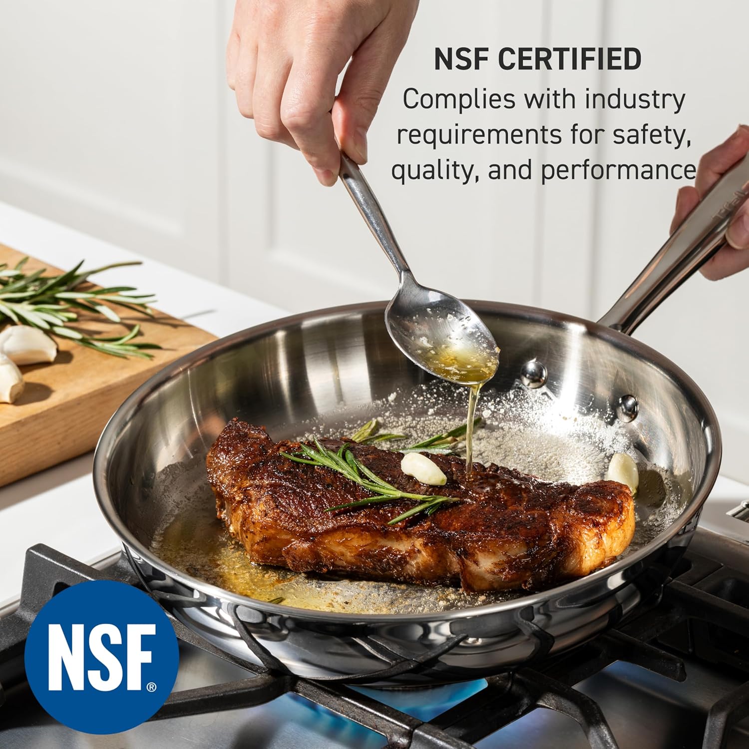 - 𝐁𝐮𝐢𝐥𝐭 𝐭𝐨 𝐋𝐚𝐬𝐭: The heavy-duty tri-ply stainless steel construction ensures durability for years to come. Certified by NSF, this cookware meets the highest professional standards for quality and durability.