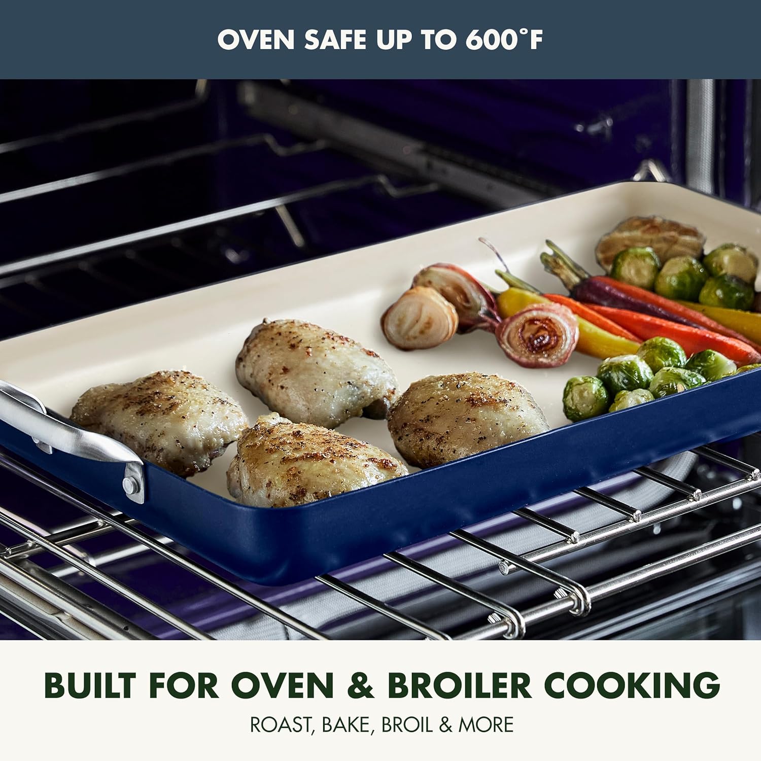 GreenPan 18" x 11" Double Burner Griddle Pan, Hard Anodized Healthy Ceramic Nonstick PFAS-Free, Stainless Steel Handles, Stovetop Cooking, Dishwasher Safe, Oven & Broiler Safe Cookware, Oxford Blue