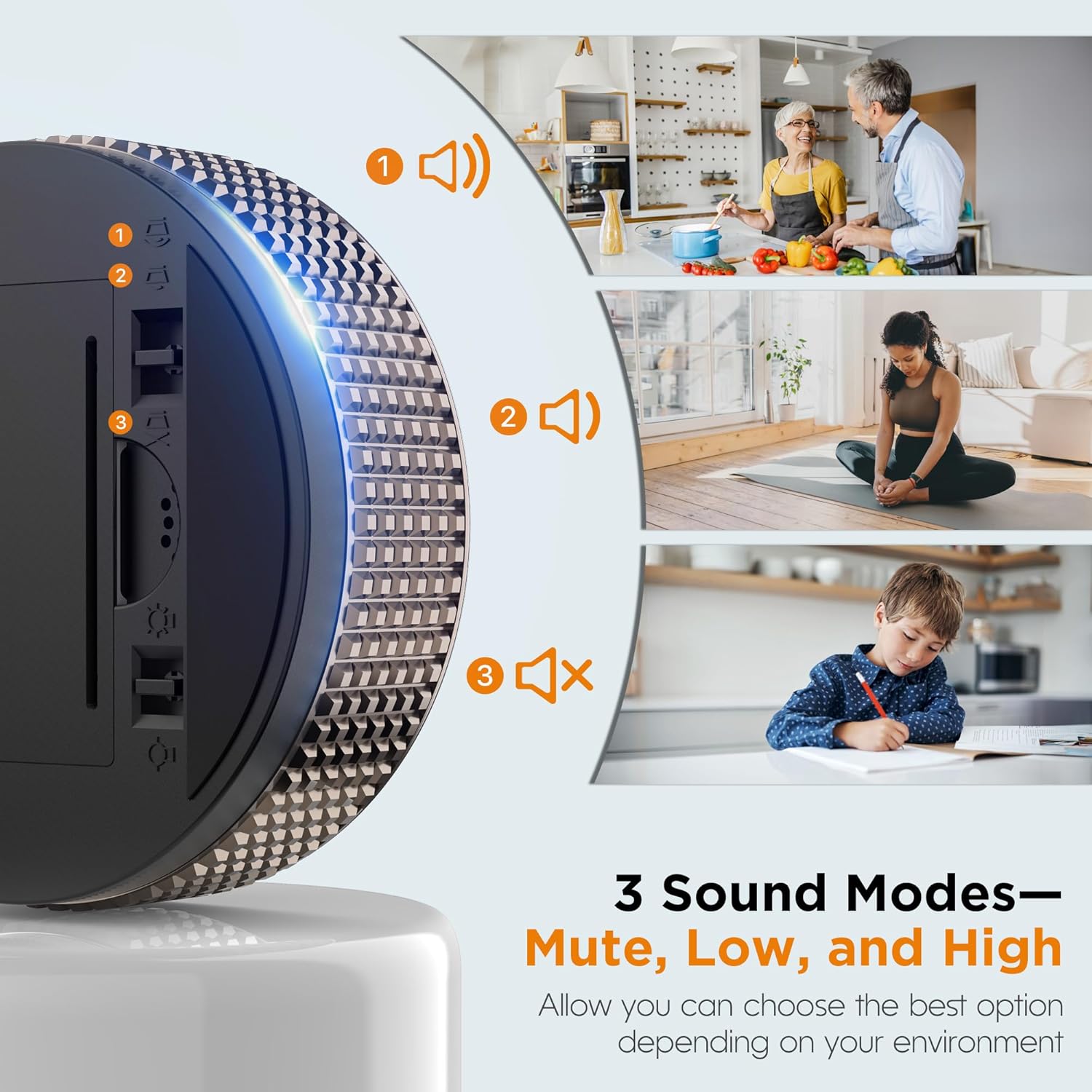 - 【Adjustable Alarm Sound Levels】: This adjustable timer features three alarm sound levels (Mute, Medium, High), ensuring you can hear it in any environment. Whether you're using it as a homework timer in a quiet library, a kitchen timer in a noisy environment, or a fitness timer during a workout, you'll always be alerted when time is up.