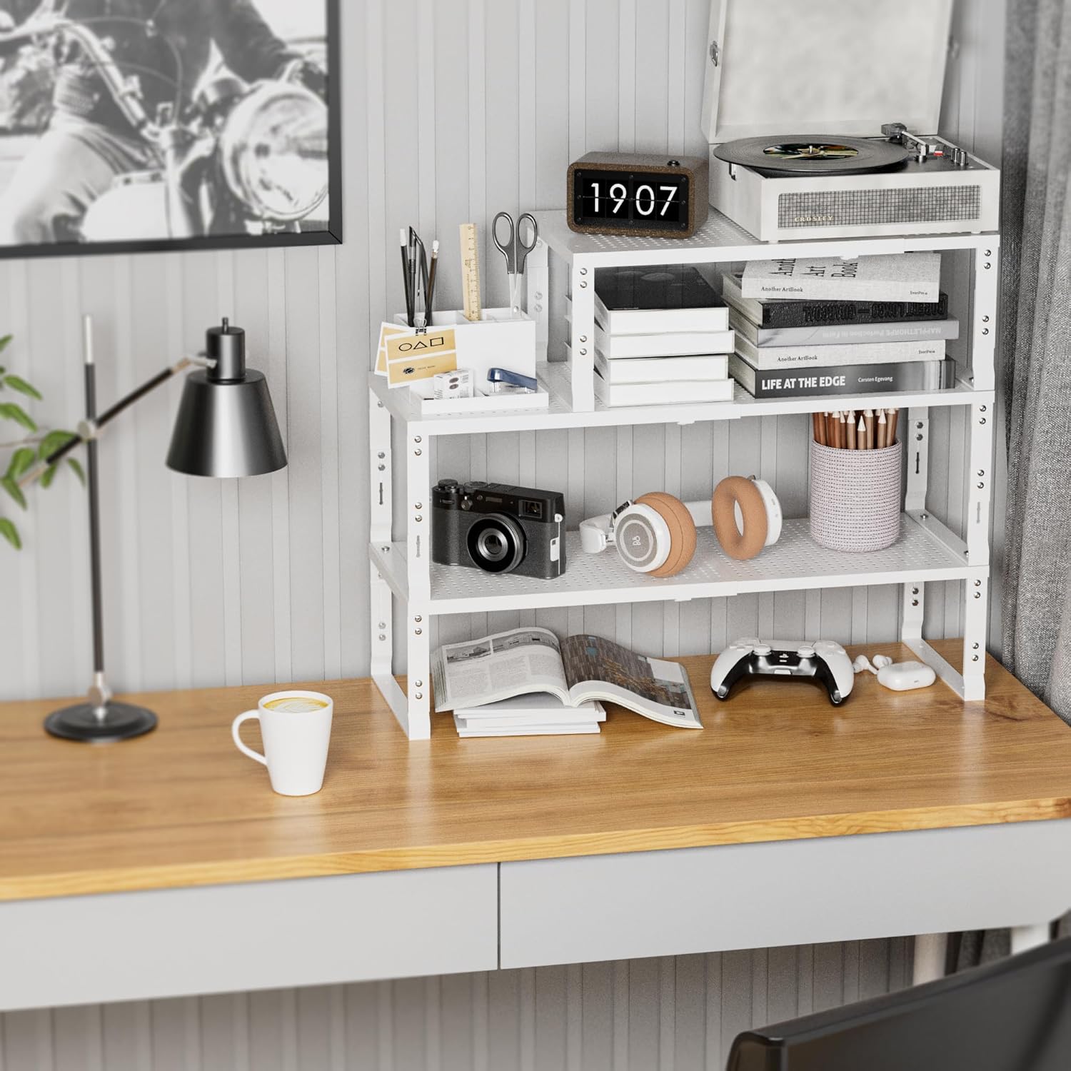 - ⭐【Expandable,Stackable】The shelves can easily expand and contract according to your storage needs, whether it is kitchen clutter or office supplies.You can combine multiple shelves together to form a large storage system, or separate them into several separate smaller units(Measure:10.24"D x 16.54"W~27.17"W x 8.31"H/7.68"H/7.05"H/6.42"H)
