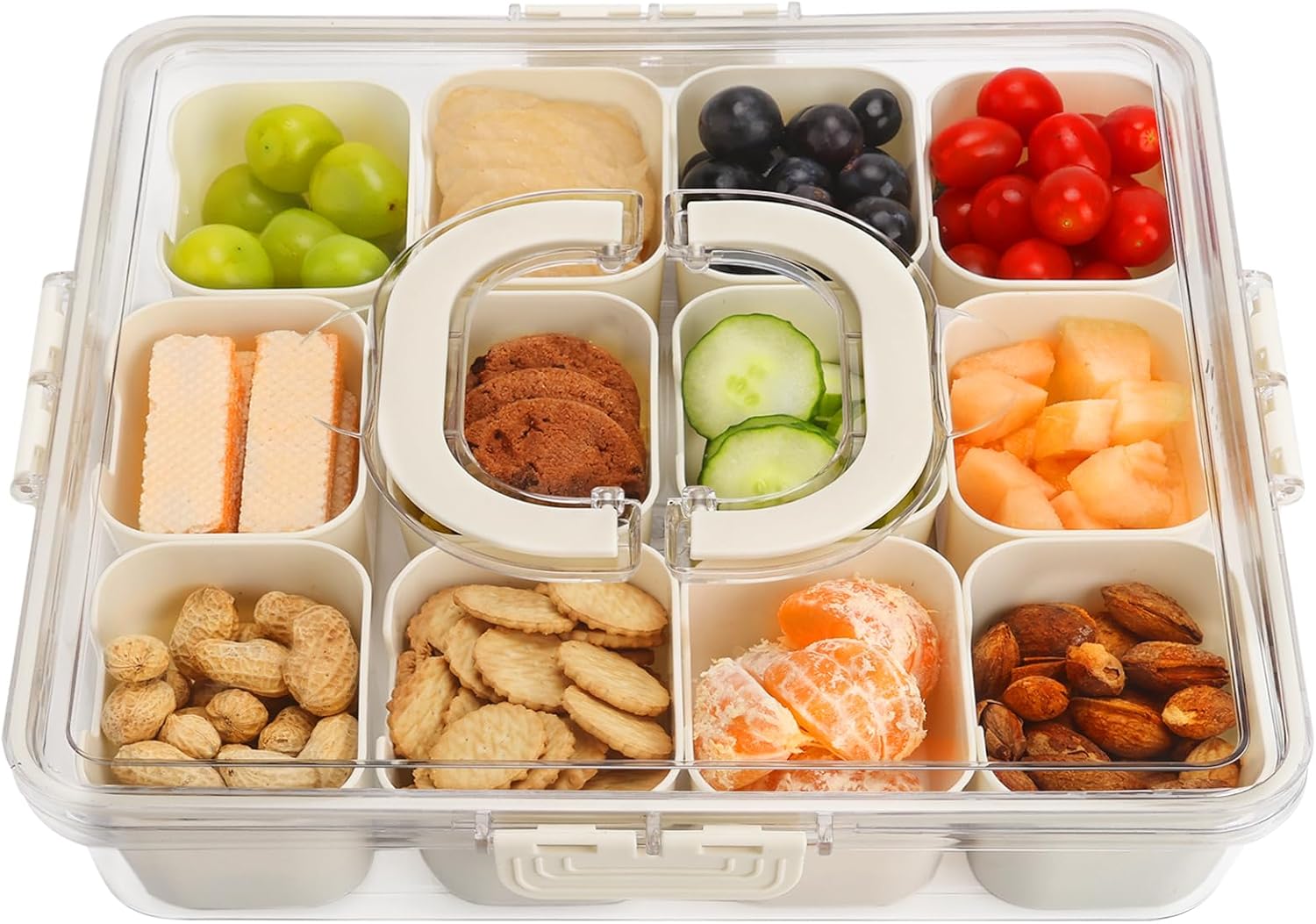 Divided Serving Tray with Lid and Handle, Portable Snack Box, 12 Compartments Veggie Fruit Tray, Charcuterie Platter Snackle Box Container for Party, Snacks, Picnic, LARGER SIZE