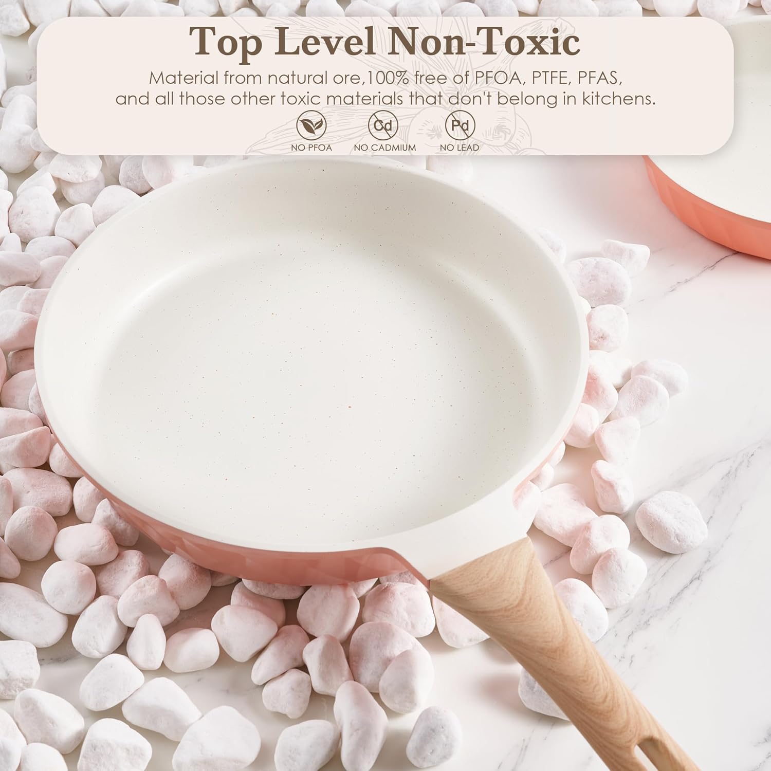 - 【Heat Up & Most Stoves Available】- Our non stick pans for cooking have an expanded high magnetic conductive base, which allows the cooking pot set to heat up quickly and evenly, saving time and energy. The skillet set are suitable for cooking on induction, gas, ceramic, electric and infrared cooker. (Tips: Wood-like handle not suitable for ovens)