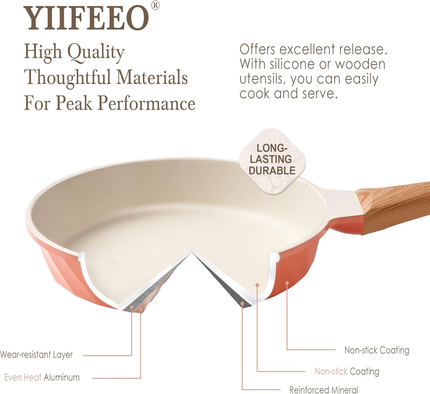 - 【Ultimate Nonstick & Super Easy To Clean】A top level, harder nonstick granite, it provides at least 8x extra nonstick durability, keeping food sliding smoothly. Being an enjoy to both cooking and cleaning, just a little wipe. YIIFEEO pan set keeps stubborn stains out of your life and keeps your passion for cooking.