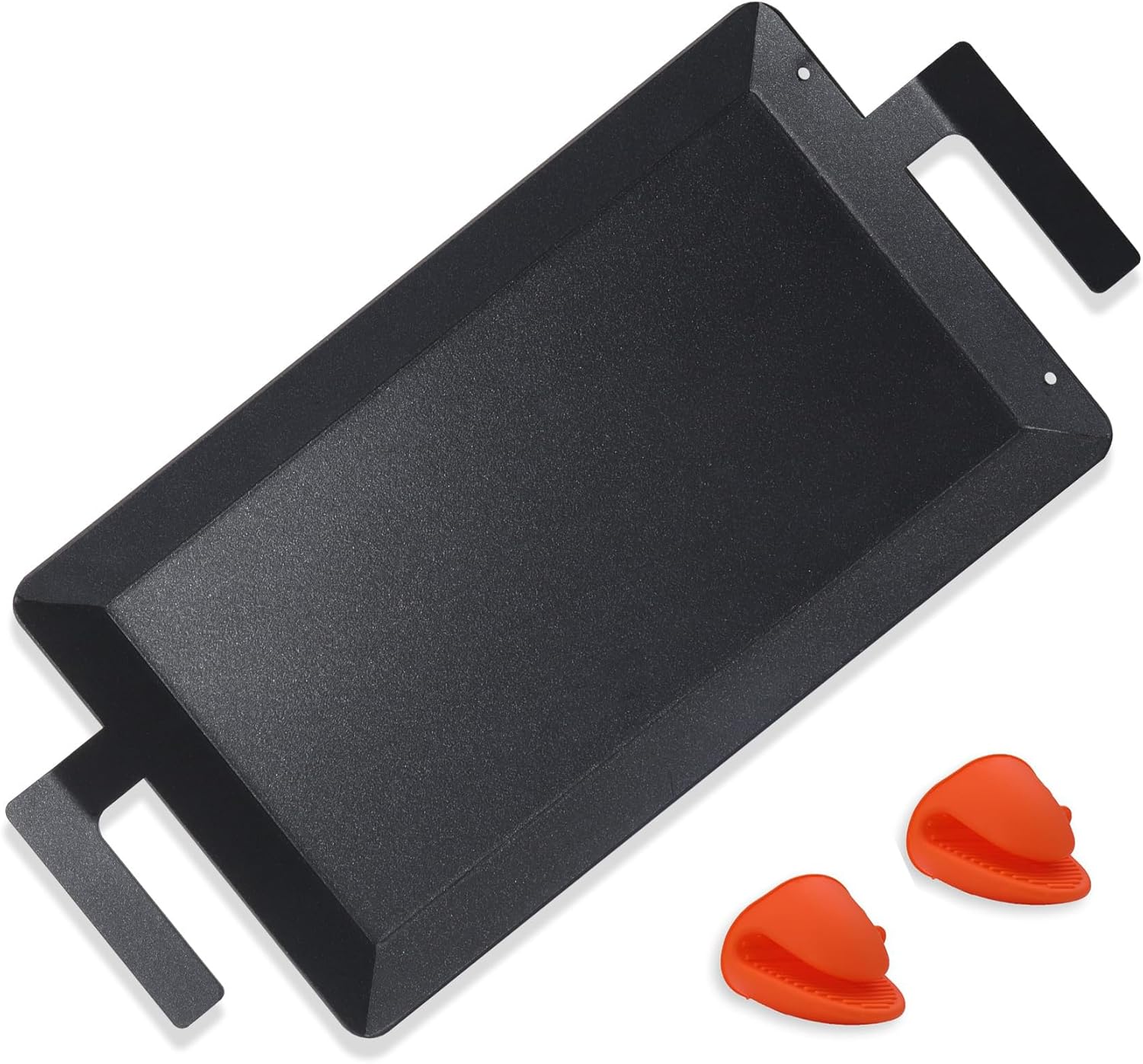 - CONVENIENT DESIGN FOR USE: Our flat grill pan made in carbon steel is features sturdy integrated handles in side and includes a pair of protective silicone heat-resistant gloves for safe and easy maneuvering, whether indoors or out. You can easily transfer your griddle pan from the stovetop to the dining table, upgrade your kitchen arsenal with this trusted, chef-approved essential today!