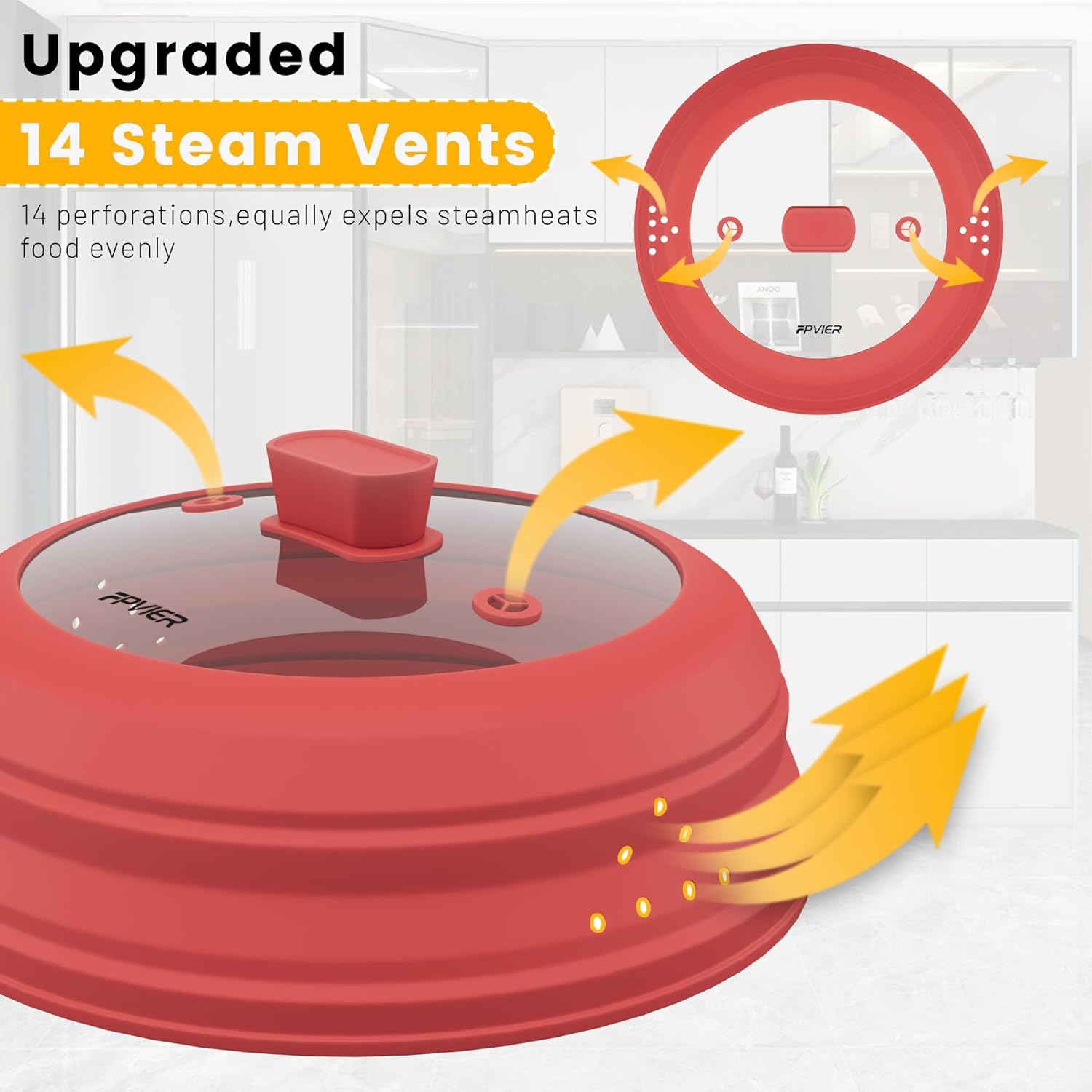 - 【Patent Collapsible Design】Experience the excellence with FPVIER's Patent Collapsible Silicone Dome, the diameter is 9 inch (22.86 cm), uniquely crafted to cover plates & bowls from 6"-8" with ease, providing a big surprise in the compact storage form.