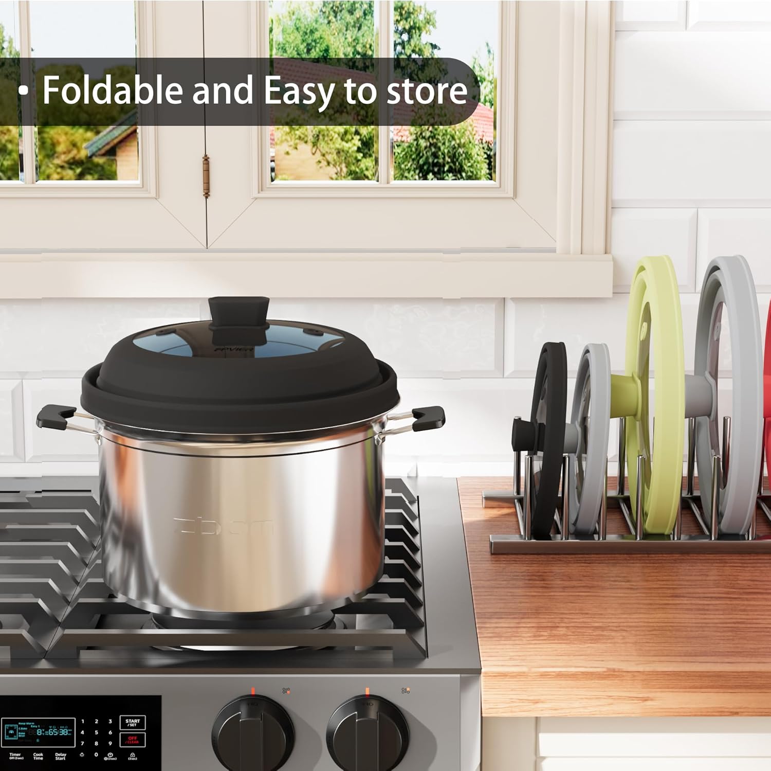 - 【SILICONE HANDLE】 The silicone handle on the top is anti-scalding and safe, so you can open it without spending a lot of time waiting for it to cool down without having to wait for it to cool