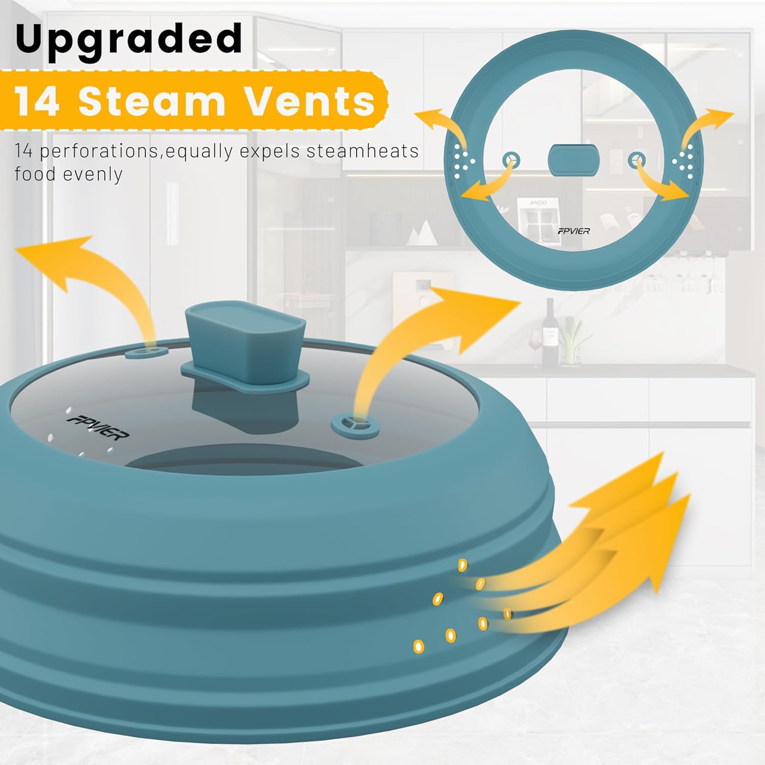 - 【Upgraded 16 Steam Vents】 Compared to the regular one, our upgraded microwave food cover has 14 extra side steam vents. Your food will be no more wet with this upgraded collapsible microwave splatter cover.