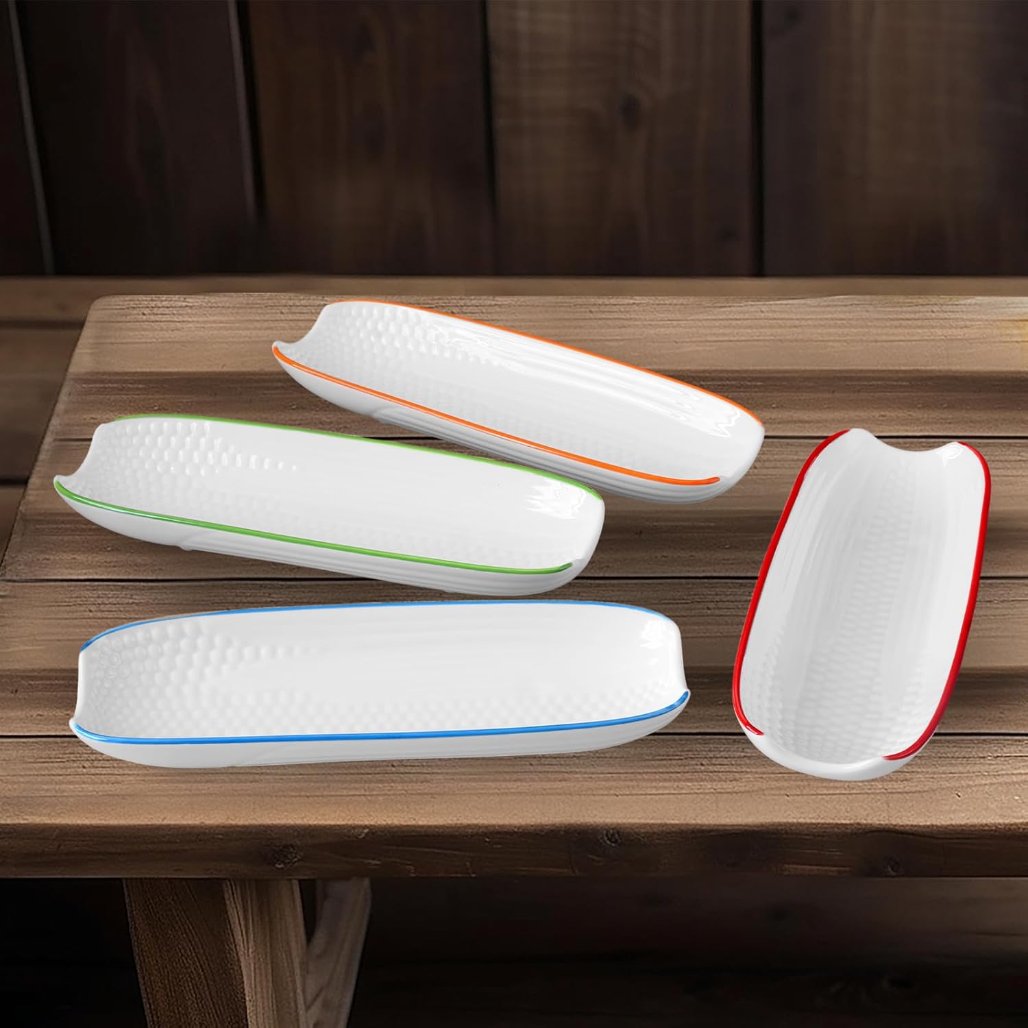 Cinf Colorful Side Ceramic Corn Cob Holders 8.8" Corn Dishes Set of 4, White Dishes Non-slip Bottom Microwave Dishwasher Oven Safe