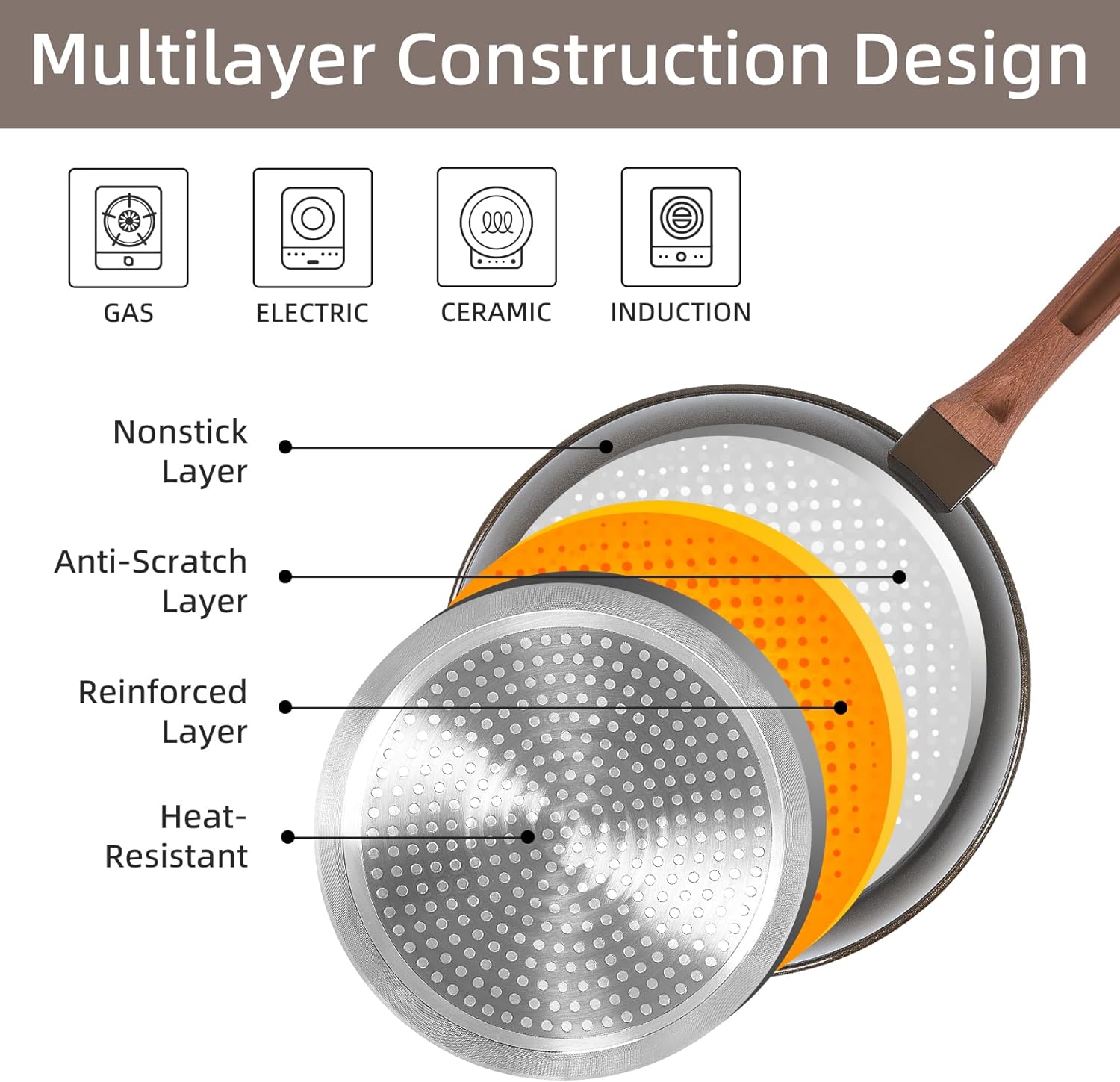- [COMPATIBLE ALL COOKTOPS] : Whether you have a gas, electric, glass, or ceramic stovetop, this versatile cooking set is designed to work with them all.