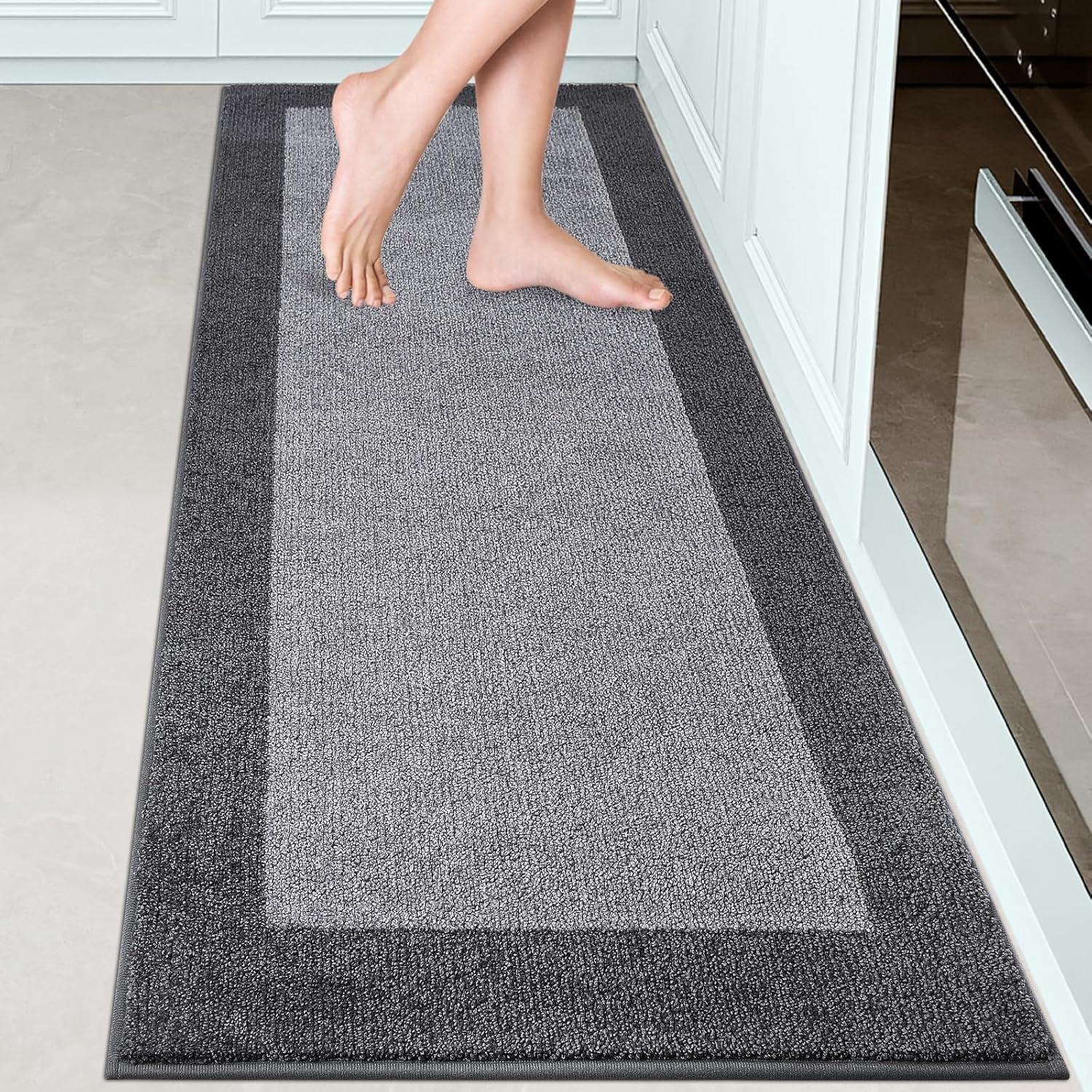 - SUPER ABSORBENT: With countless polyester microfibers, our kitchen rugs efficiently absorb spilled oil and water.This sophisticated look will elevate any space, including living room, kitchen, bedroom, bathroom, and hallways.