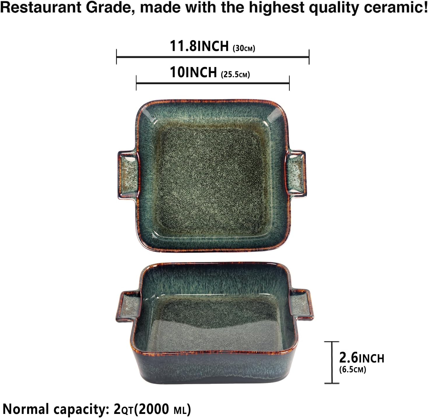 - Lead Free Eat Safty - Our Baking Dish set is made of Ceramic material and features an all-natural glaze that is lead-free, cadmium-free. The Baking Dish is fired at a high temperature of 2340℉ for 17 hours to ensure its durability and safety. With this Baking Dish, you'll never have to worry about any health problems. Withstands 500 F°, for Oven, Dishwasher and Microwave Safe.