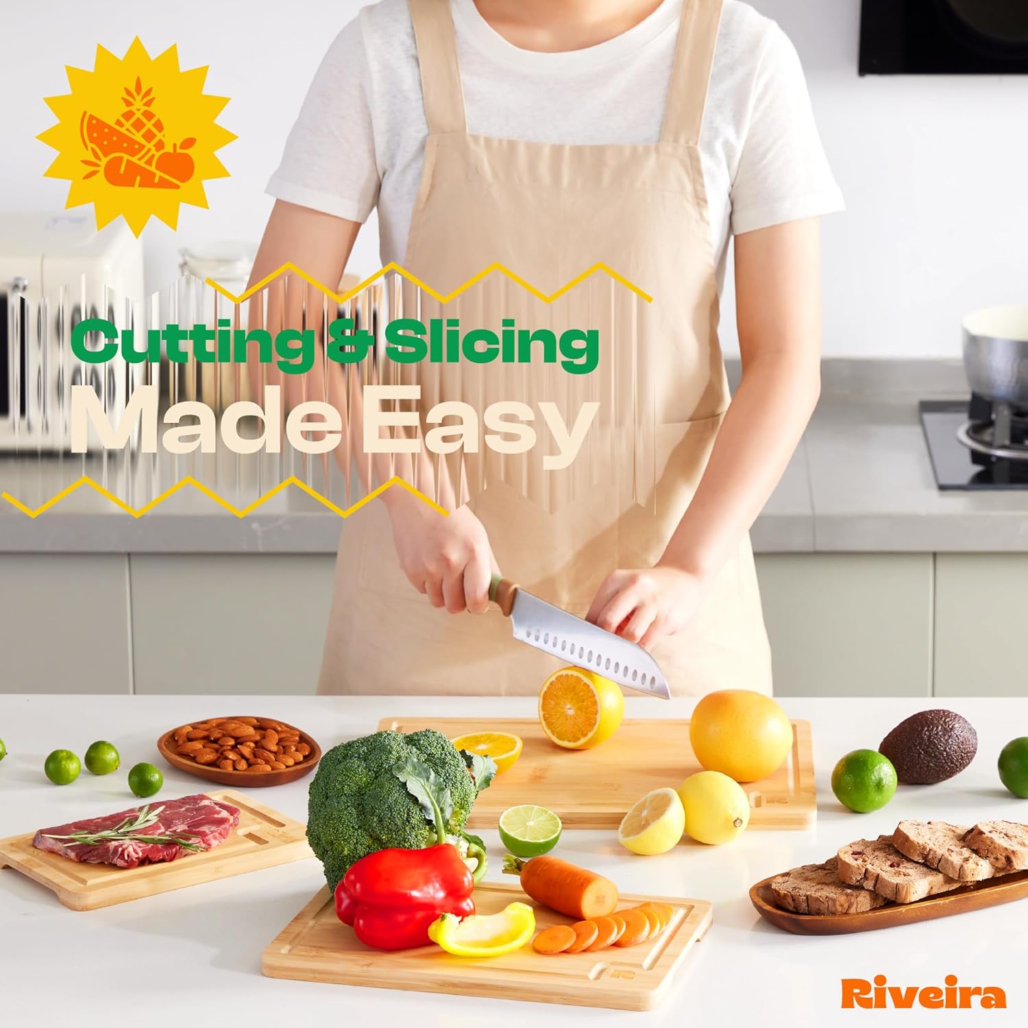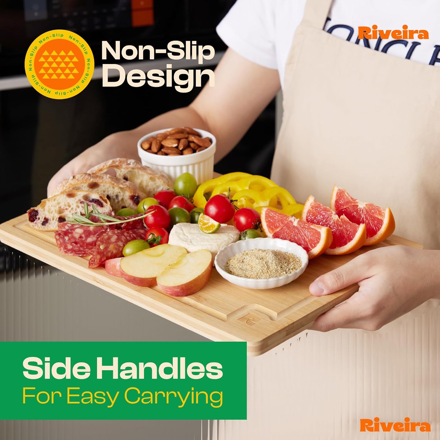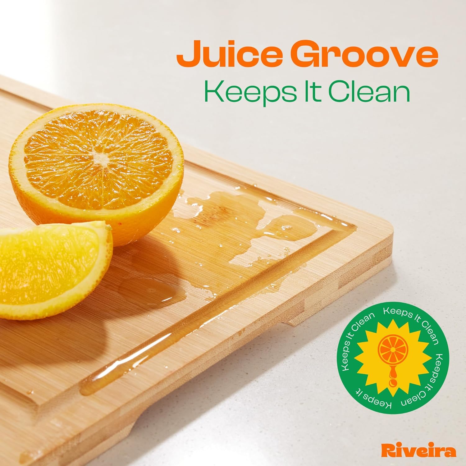 Riveira Brown Bamboo Wood Cutting Board – Gourmet Bamboo Grandeur: 8 x 8 Wooden Cutting Board – Wooden Cutting Boards For Kitchen Decorative – Innovative Juice Grooves Wooden Chopping Board