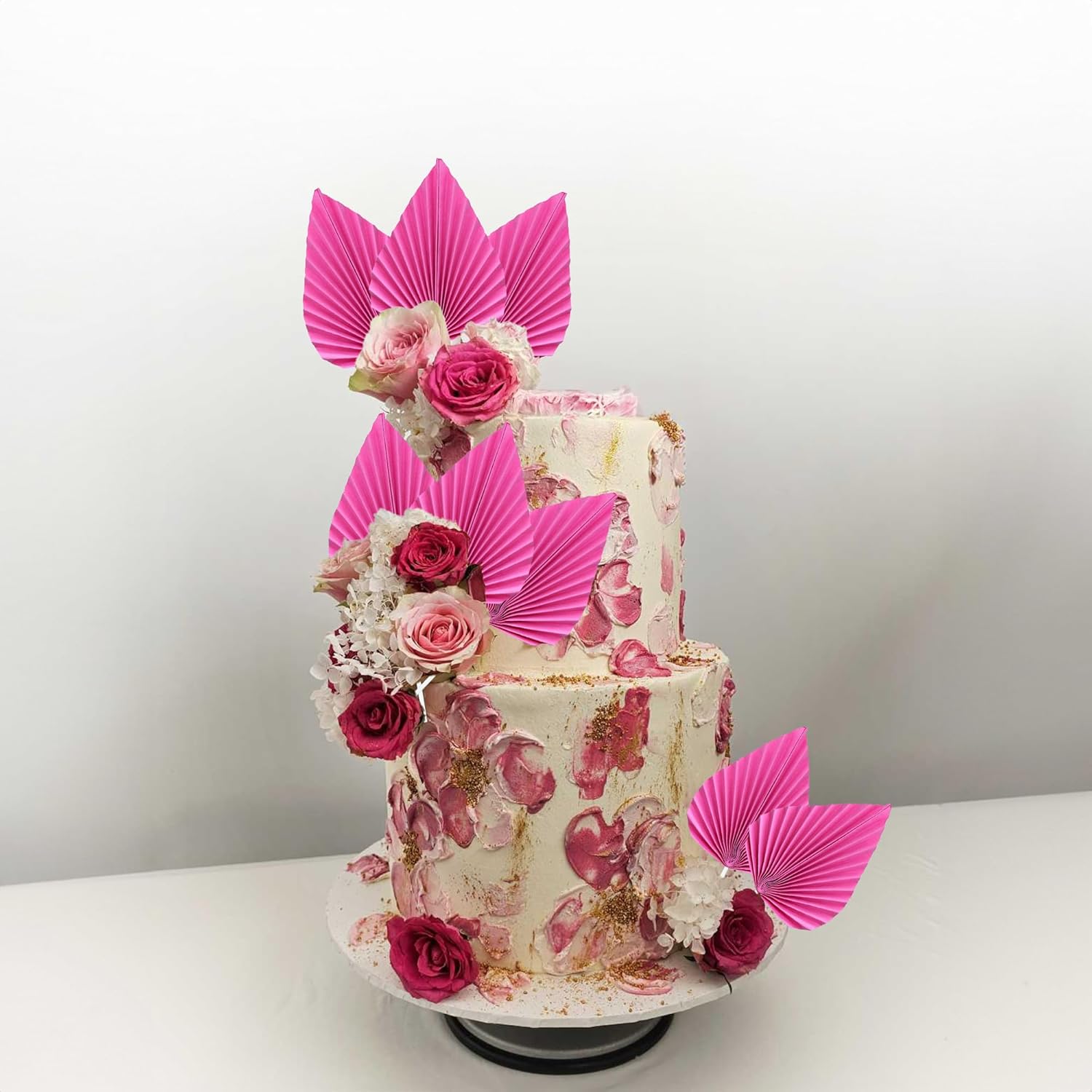 - -Package included: 6Pcs Paper Palm Fan Cake Toppers. Comes with unassembled, so you can insert into your cake with stick, which make your cake more interesting.