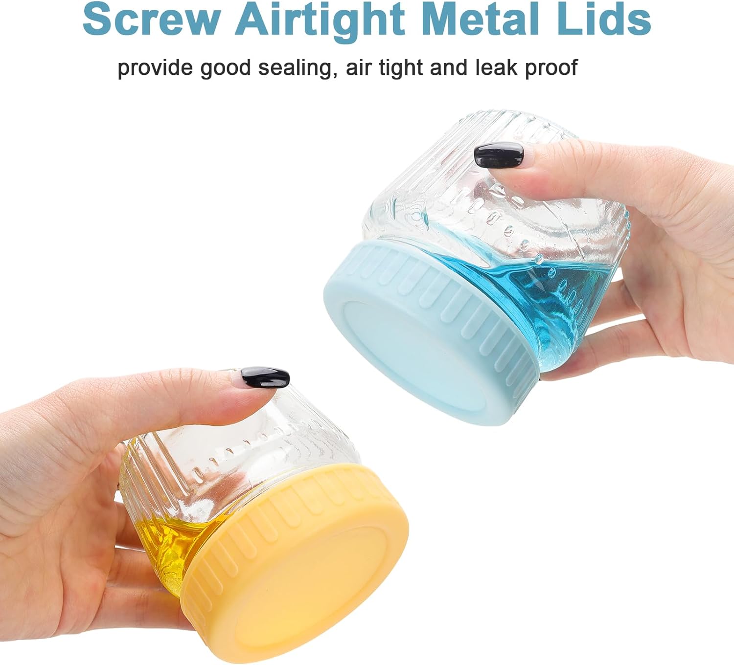 Glass Regular Mouth Mason Jars, Mini Mason Jars 4 oz, 8 Pack Clear Glass Jars with Colorful Plastic Lids, Small Canning Jar for Spice, Jam, Honey, Jelly, Dessert