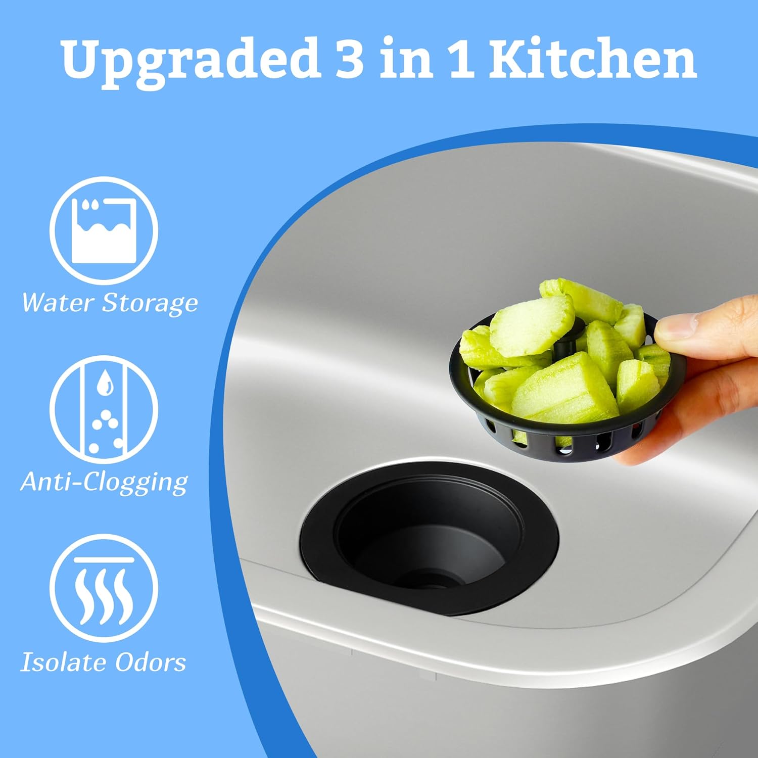 - SIZE: This kitchen sink strainer fits most standard 3-1/2 inch diameter sink opening. The rim diameter of this strainer is 4.35 inch, and height is 2.22 inch. The basket is 0.79 inch tall.