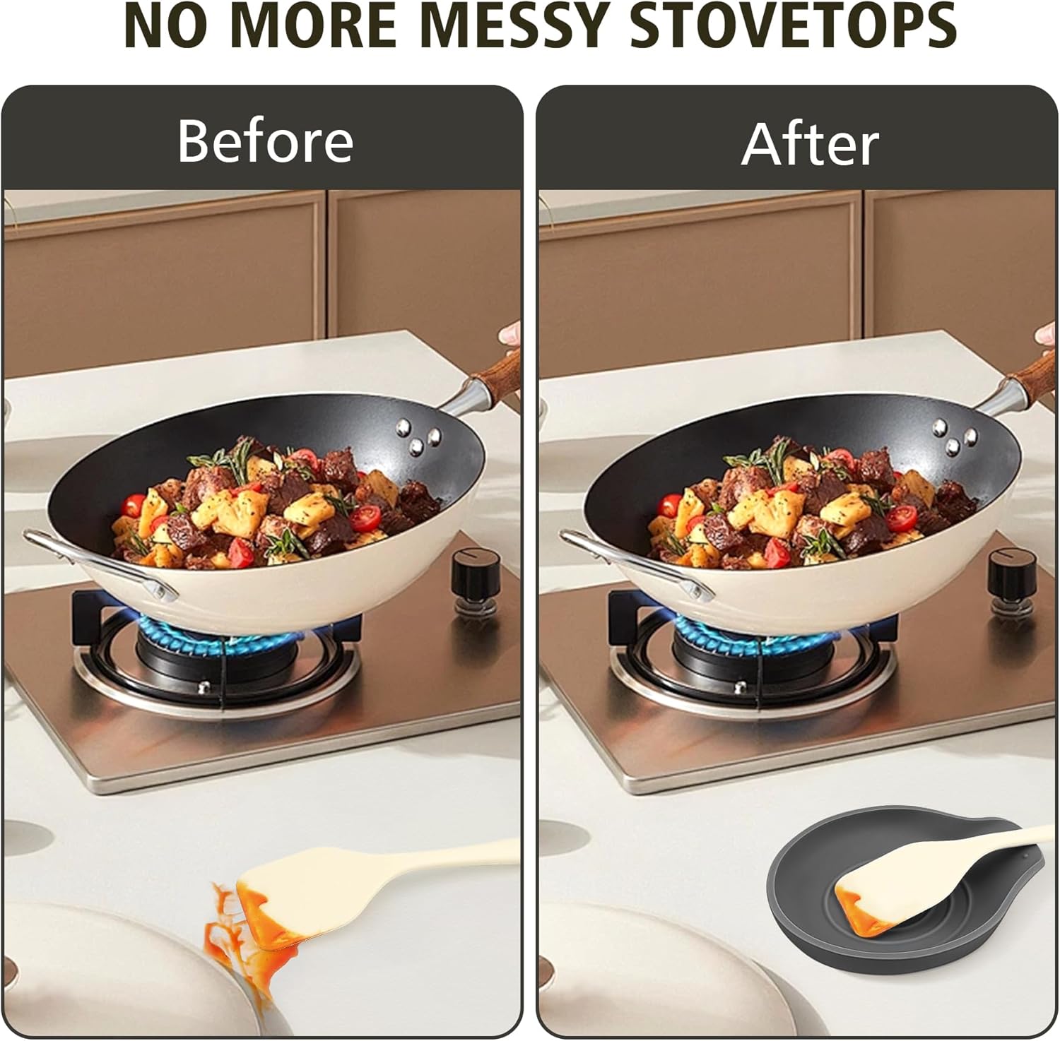 - Zero Mess:VanlonPro spoon rest catch all the drips and drops from your cooking utensil, protecting your counter and stove top from messes, and revolutionize your cooking, baking, or grilling experience