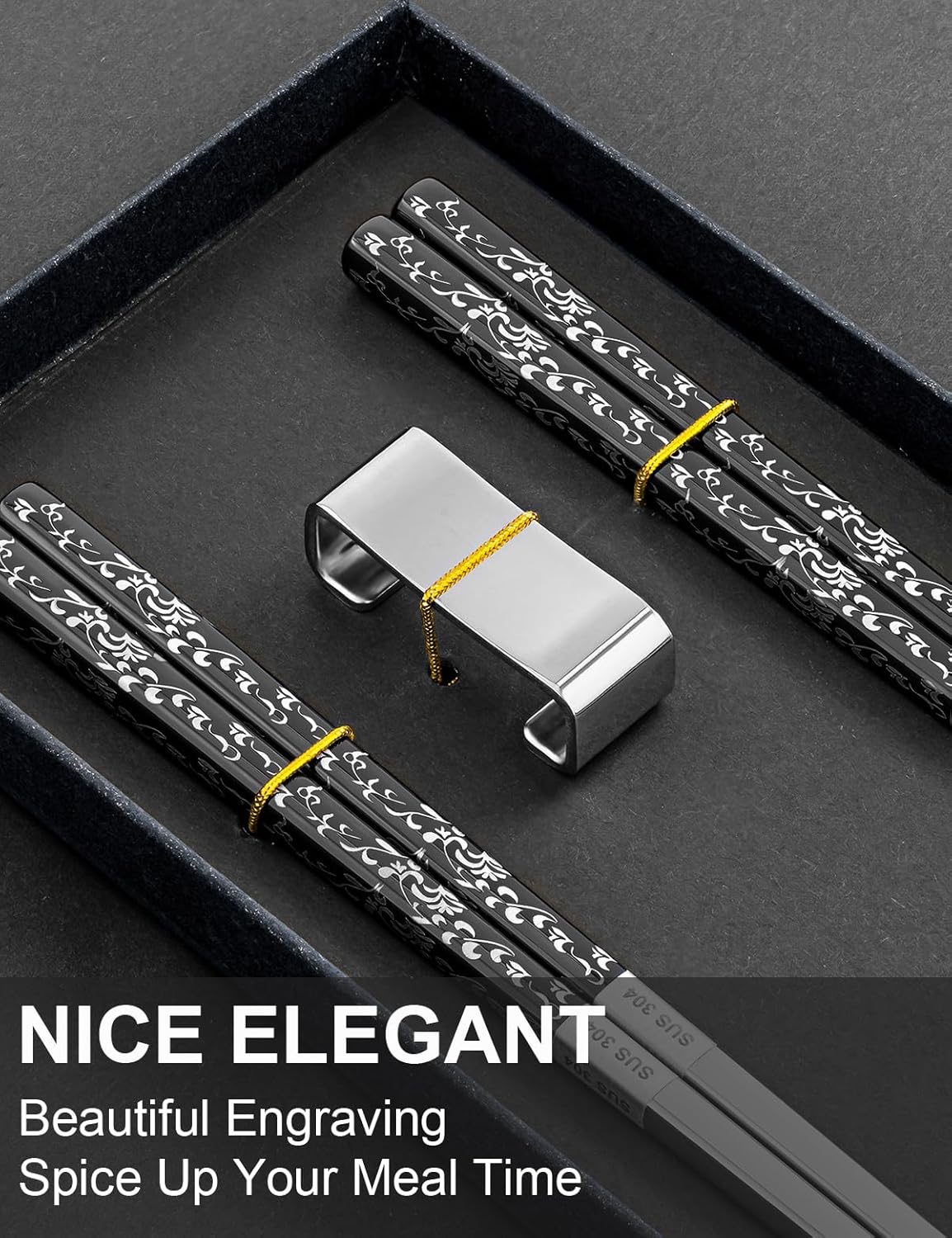 - 【PRETTY PRESENT SET】 2 pairs metal chopsticks with holder in a pretty present package. Craftsmanship and elegant chopsticks is a good present choice for Christmas, anniversaries, birthday party etc