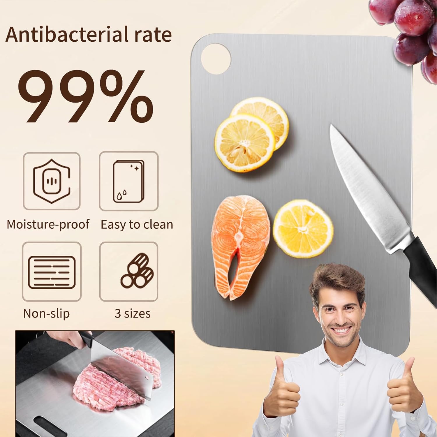 - 【Safe Cutting Board for Kitchen】Our New Upgrade Titanium Cutting Board,Stainless steel Cutting Board represents a major leap forward from traditional plastic and wooden boards. With advanced features and improvements, this cutting board addresses common issues such as crumbs, cuts, and odor absorption. Designed to maintain hygiene and durability, it ensures a cleaner, healthier kitchen experience. Upgrade to our cutting board for superior performance and protection for your culinary needs.