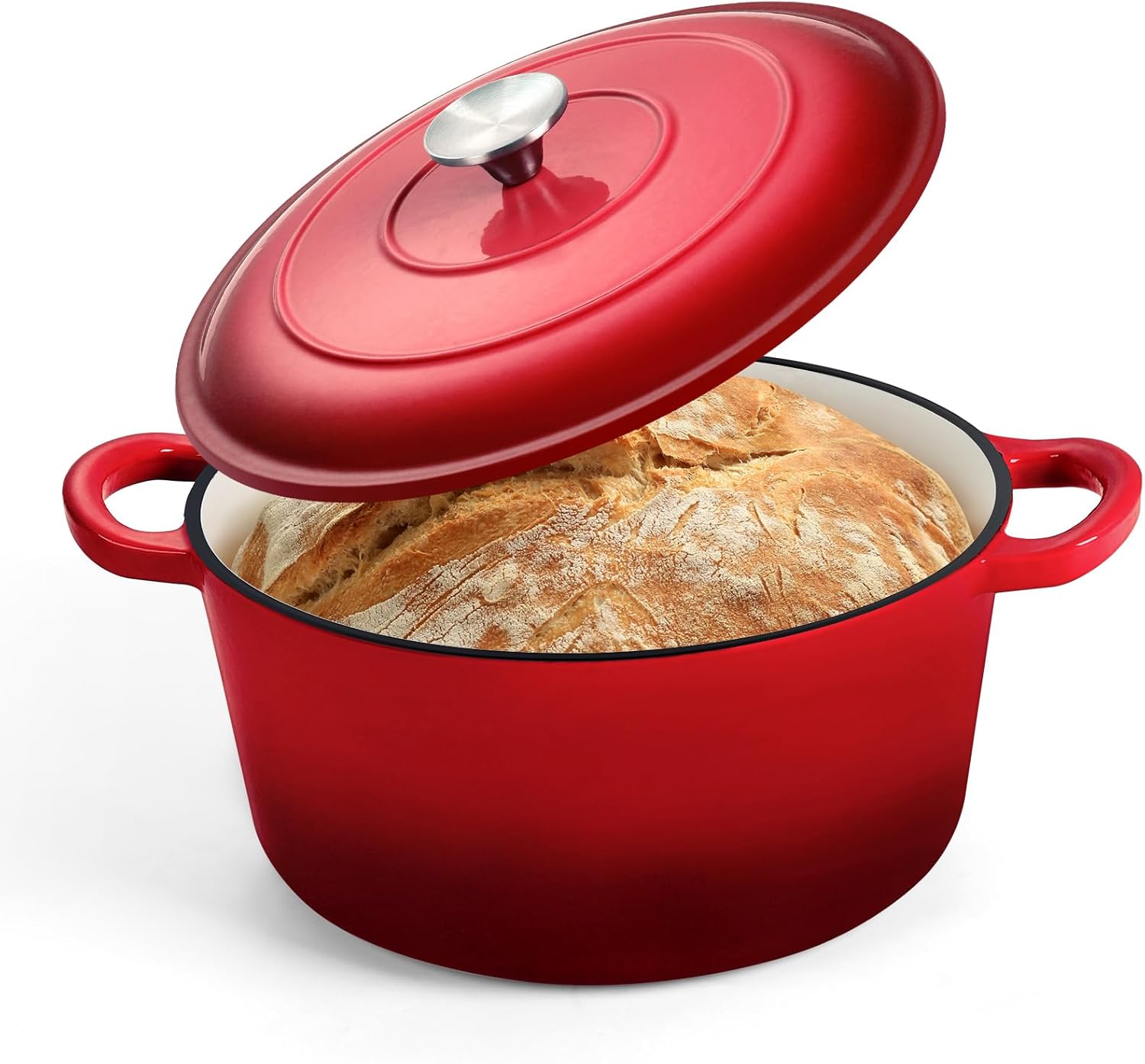 P&P CHEF 5QT Enameled Dutch Oven, Cast Iron Dutch Oven Pot with Lid for Bread Baking, Enameled Casserole Pot for Roasting Braising Stewing Frying Simmering, Various Stoves & Easy Clean, Red
