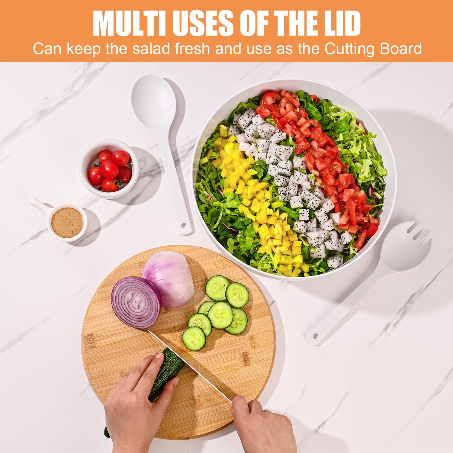 - Versatile Use: large salad bowl with lid can also be used for salads,fruits,pasta,popcorn and a variety of doughs, baking. Whether for a picnic, a potluck, a daily meal at home or gift-giving, this salad serving bowls is a practical and stylish choice that can adapt to different occasions and nee