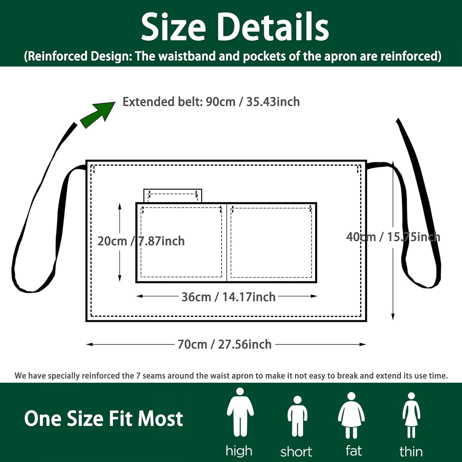 - Extended Waist Ties - The waitress apron back strap extended to 90cm (35.43 inch), long waist ties can be easily altered to fit most sizes, suitable for both men and women