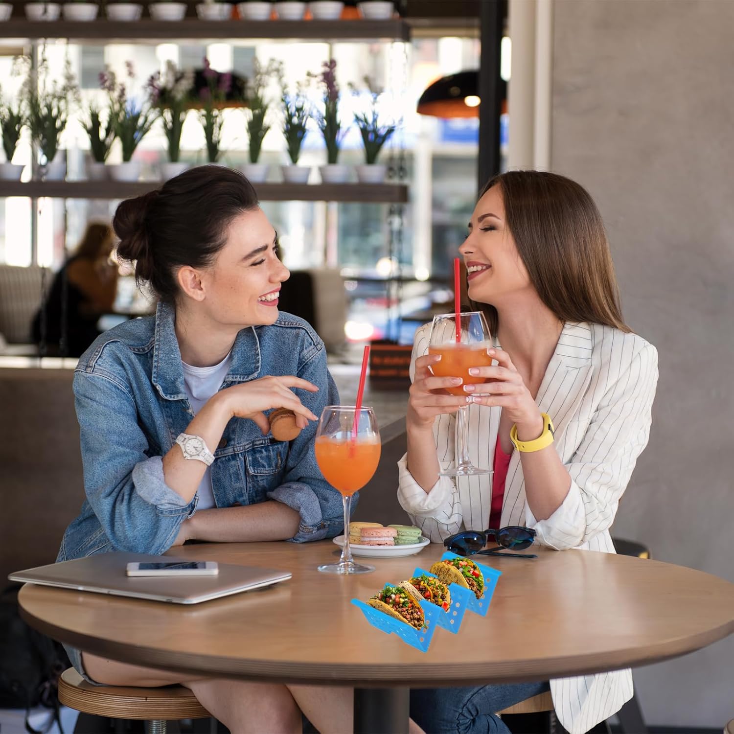 uxcell 8 Pcs Taco Holder Stand, Plastic Taco Plates Hold Up to 3 Tacos, Hollow Carved Taco Shell Holder, Dishwasher Microwave Safe, Blue